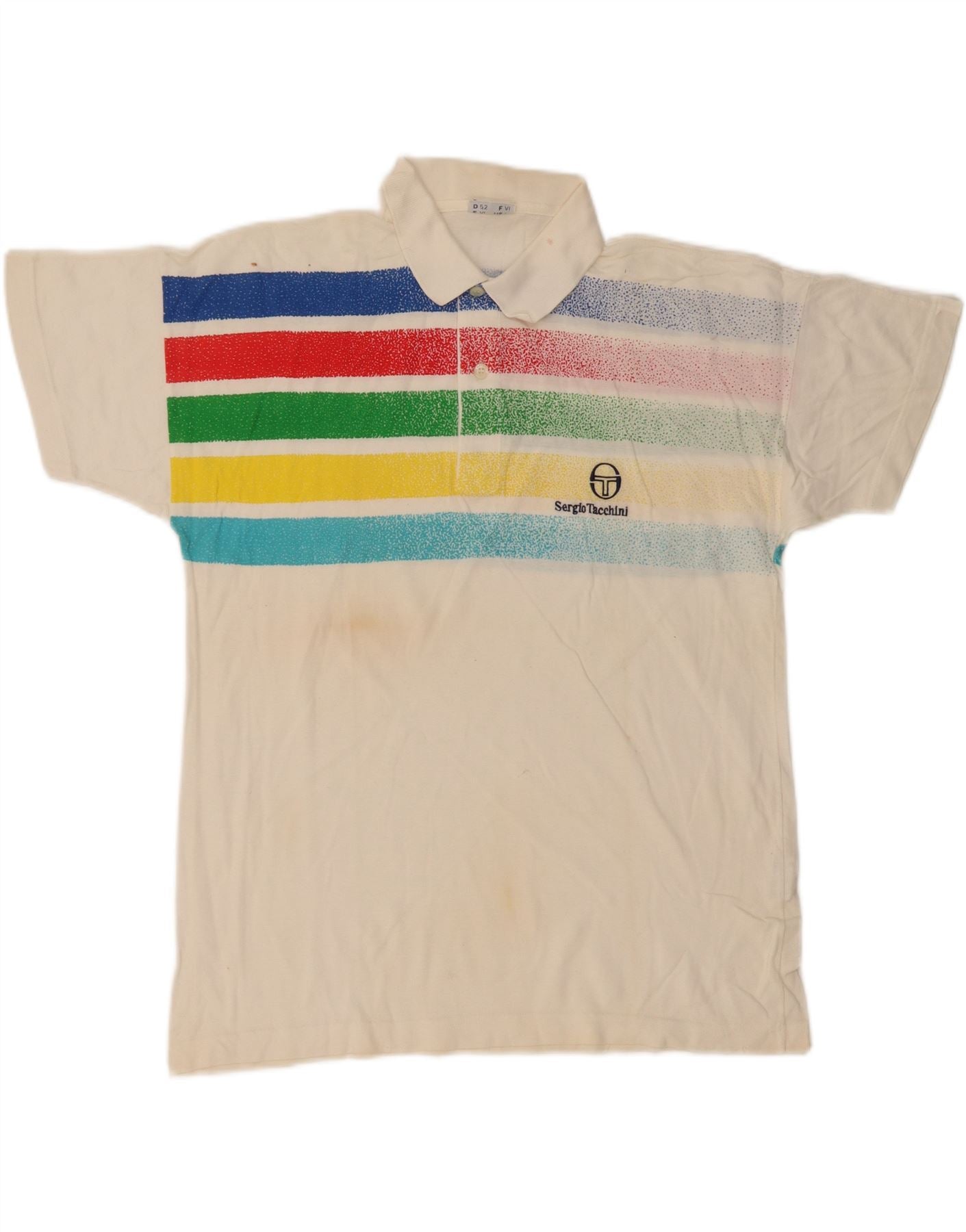 SERGIO TACCHINI Mens Polo Shirt IT 52 Large White Striped Cotton