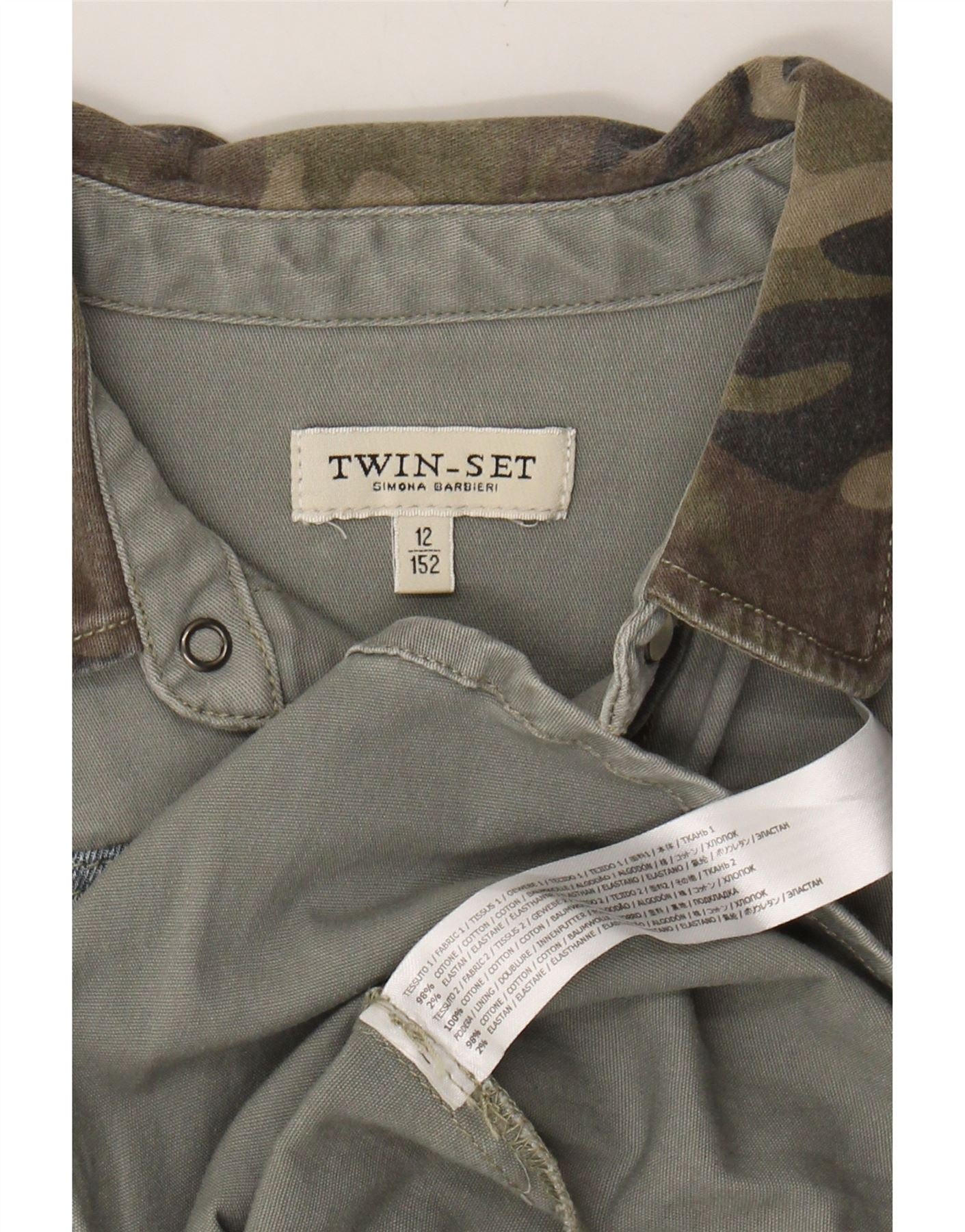 SIMONA BARBIERI Boys Twin-Set Shirt 11-12 Years Green Camouflage Cotton