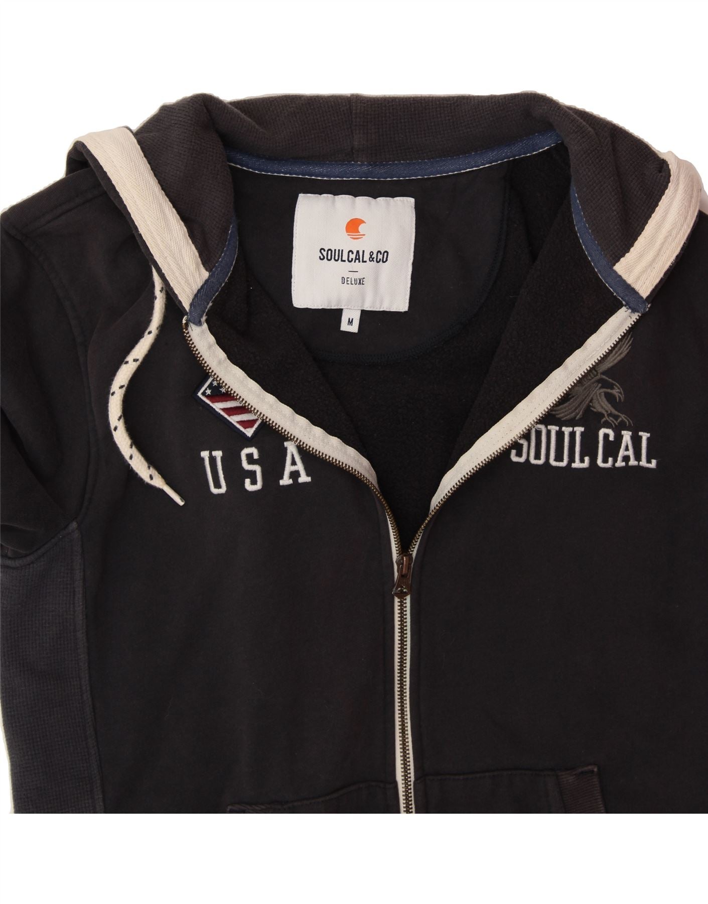 SOUL CAL Mens Graphic Zip Hoodie Sweater Medium Navy Blue Cotton