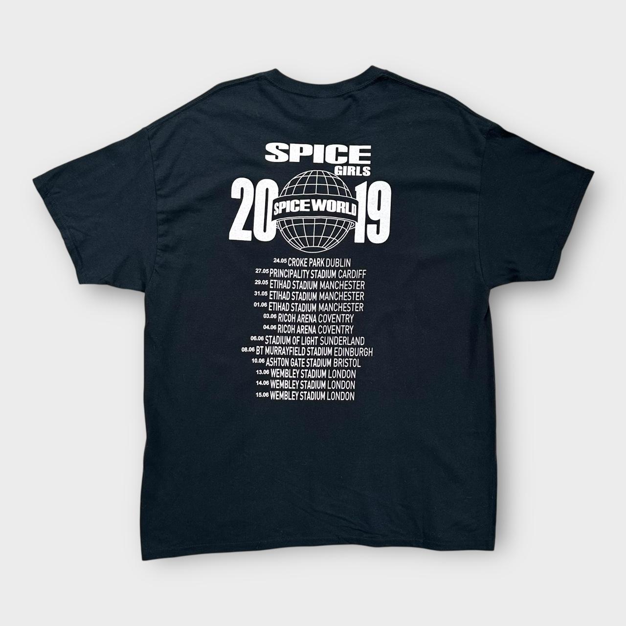 Tricou muzical Spice Girls „spic world” 2019 în turneu din Marea Britanie, în negru, cu imprimeu grafic pe piept și pe spate pe o etichetă Gildan