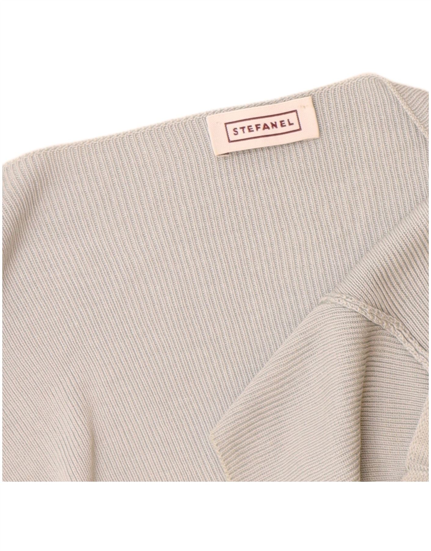 STEFANEL Womens Crop Short Sleeve Cardigan Sweater UK 14 Medium Blue Rayon