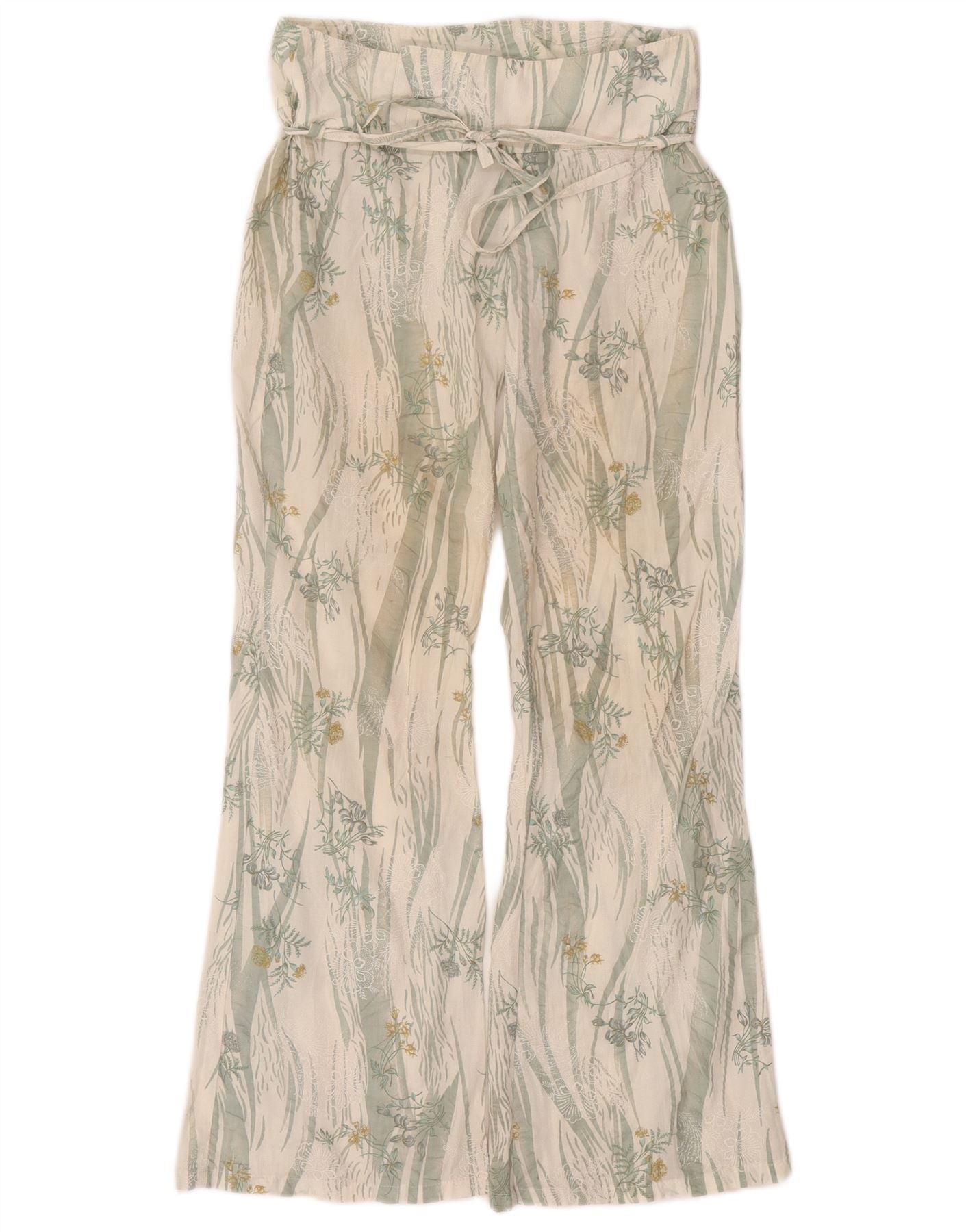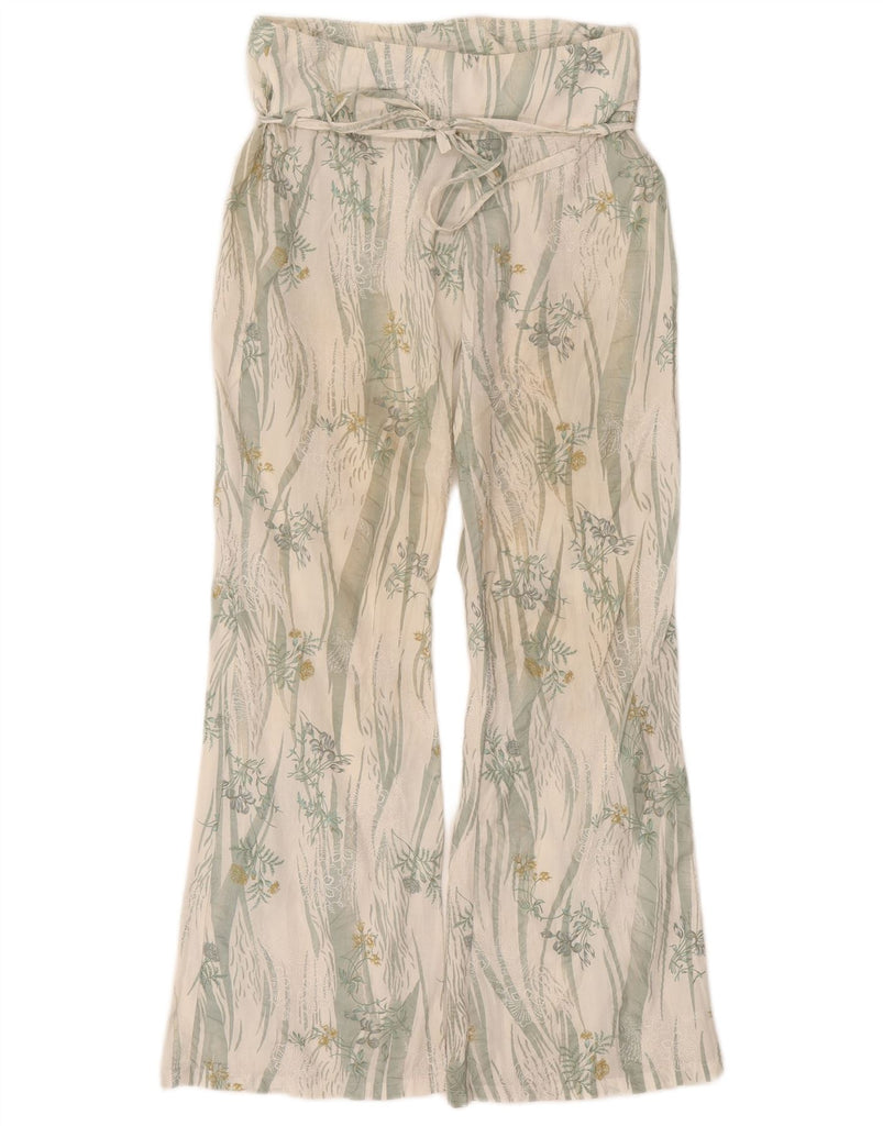 STEFANEL Womens Flare Casual Trousers W28 L29 Off White Floral Cotton