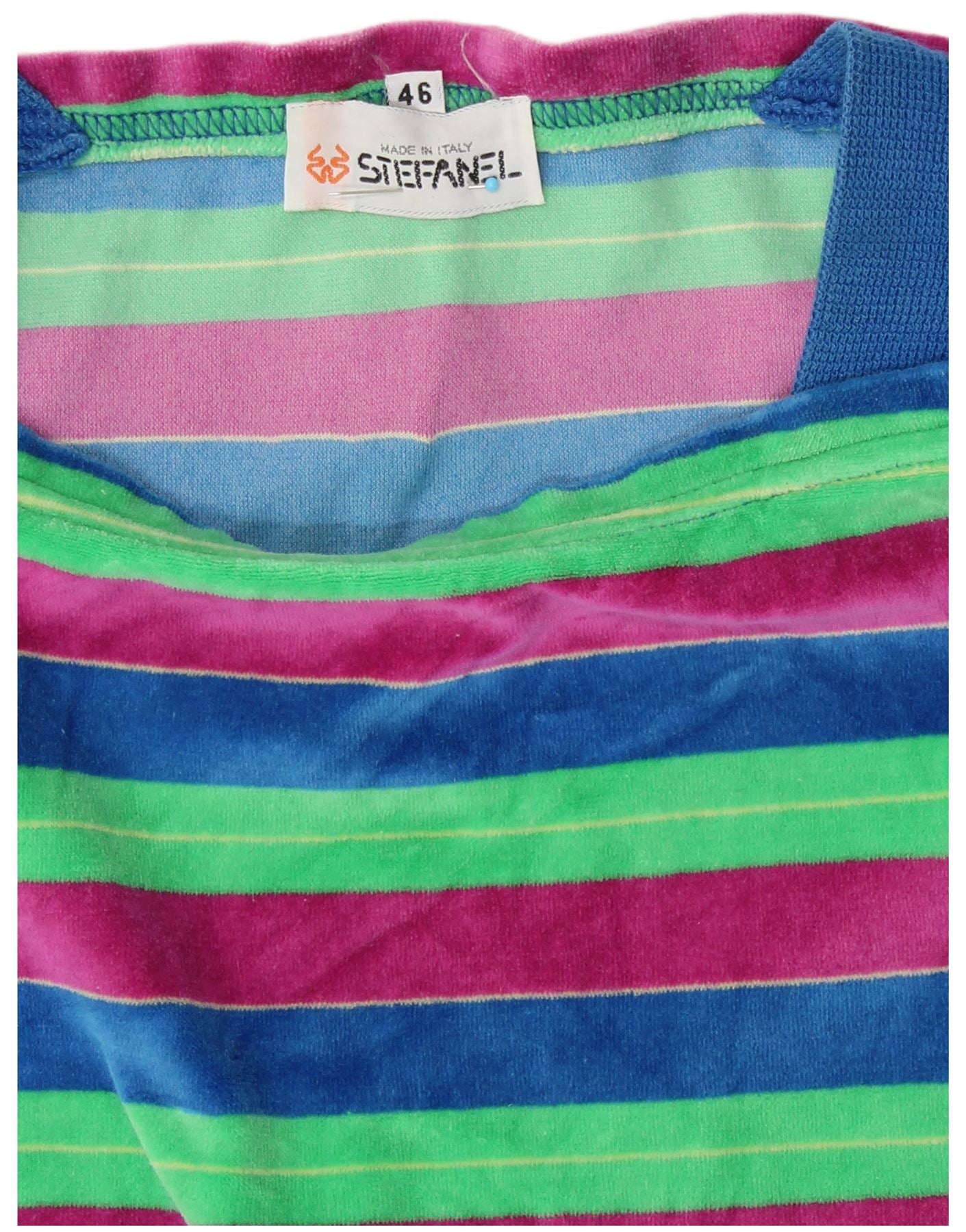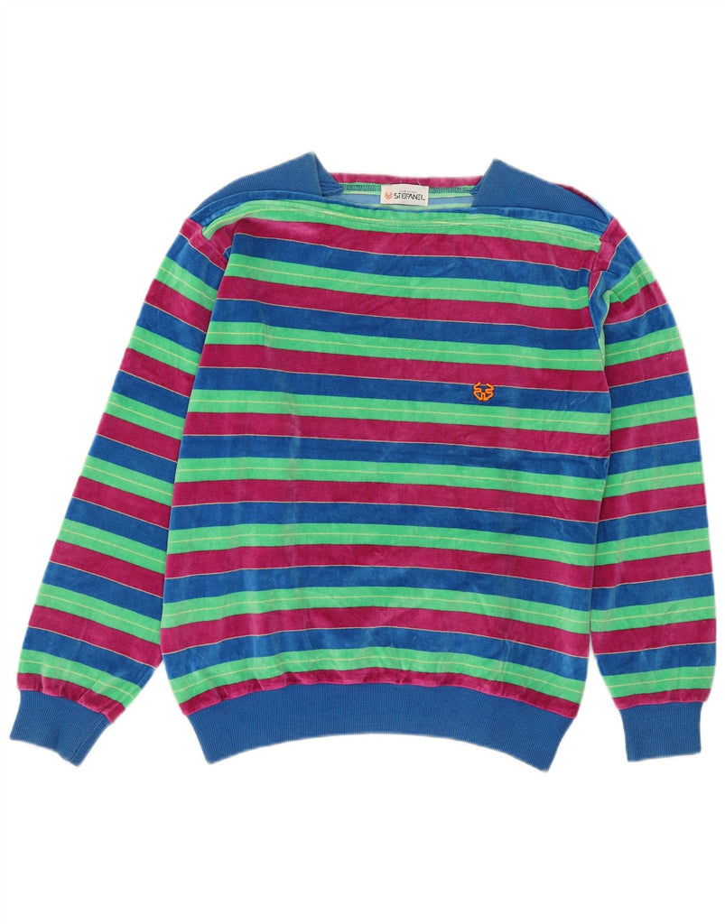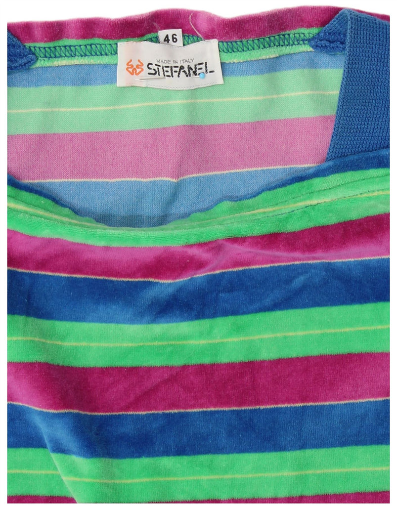 STEFANEL Womens Velour Sweatshirt Jumper IT 46 Large Multicoloured Striped