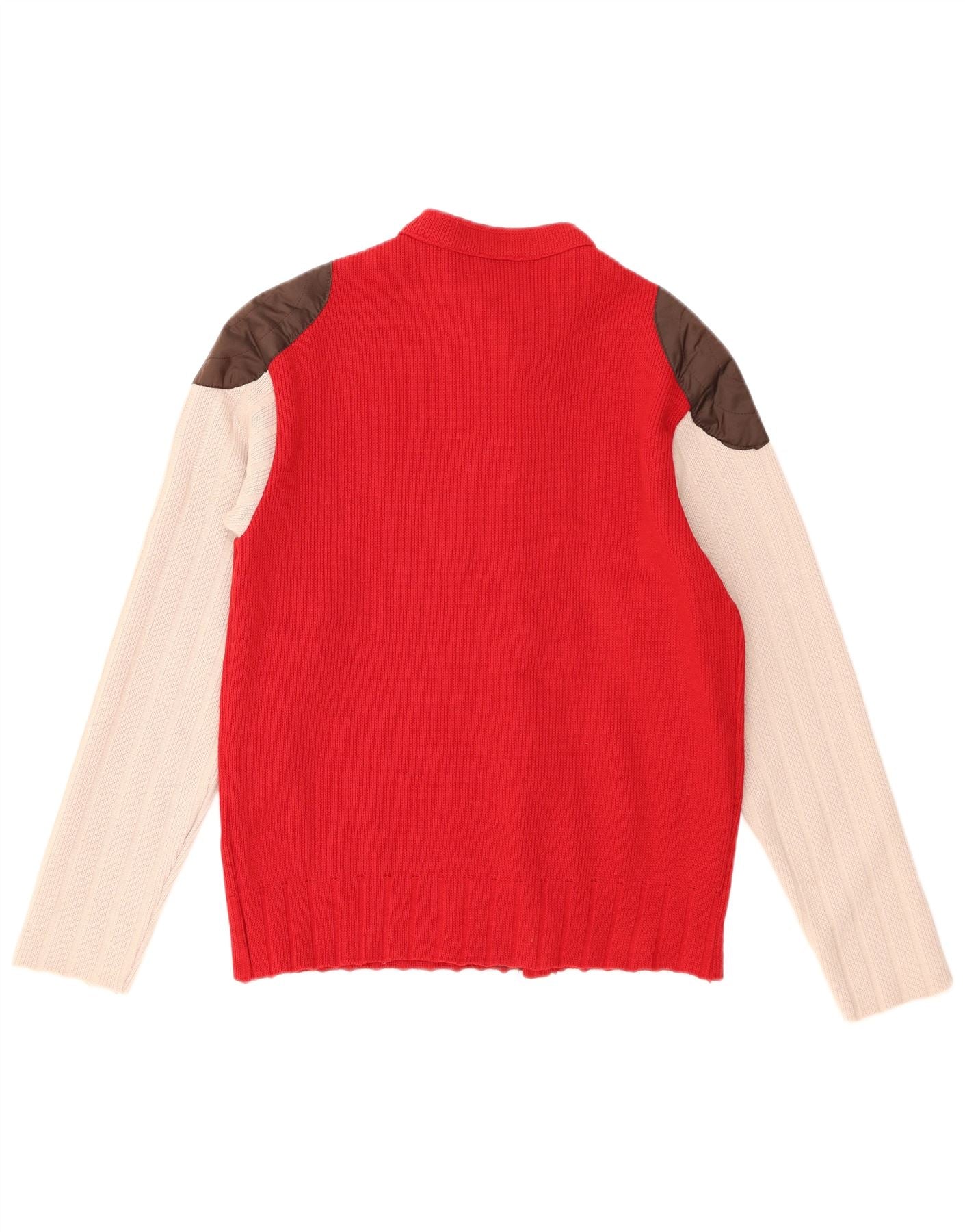 - Descriere AI: Acest pulover cardigan pentru bărbați Studio este confecționat dintr-un tricot confortabil din amestec de lână și poliacrilic. Prezintă un design colorblock uimitor, cu un corp roșu, mâneci lungi bej contrastante și panouri maro pe umeri. Gâtul fals și închiderea cu fermoar oferă un aspect modern. Două buzunare cu fermoar în față adaugă detalii practice. Potrivirea sa regulată asigură o purtare confortabilă pentru stilul de zi cu zi.