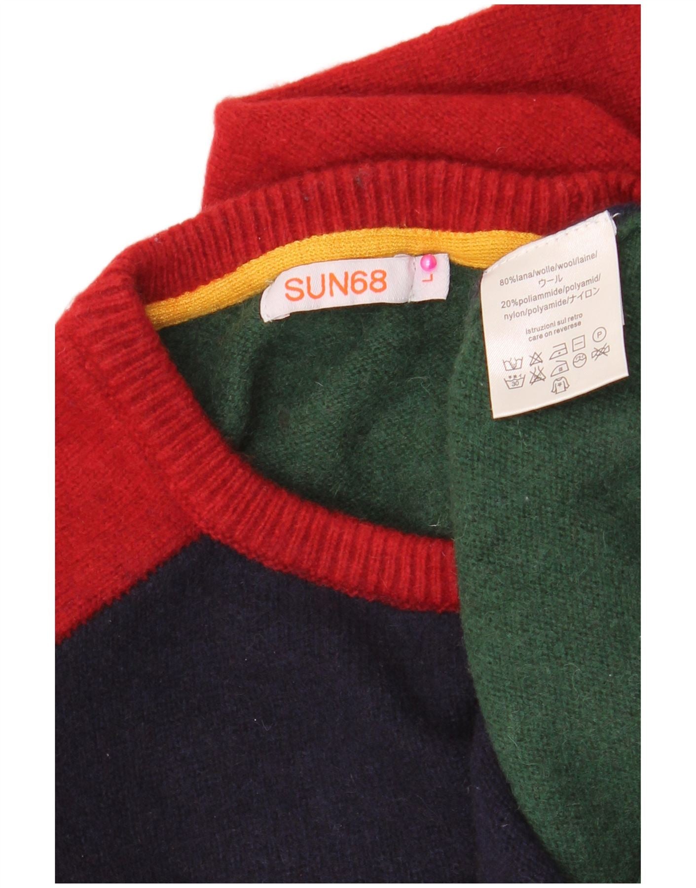 SUN68 Pulover pentru damă cu decolteu rotund UK 16, mare, bleumarin, color block