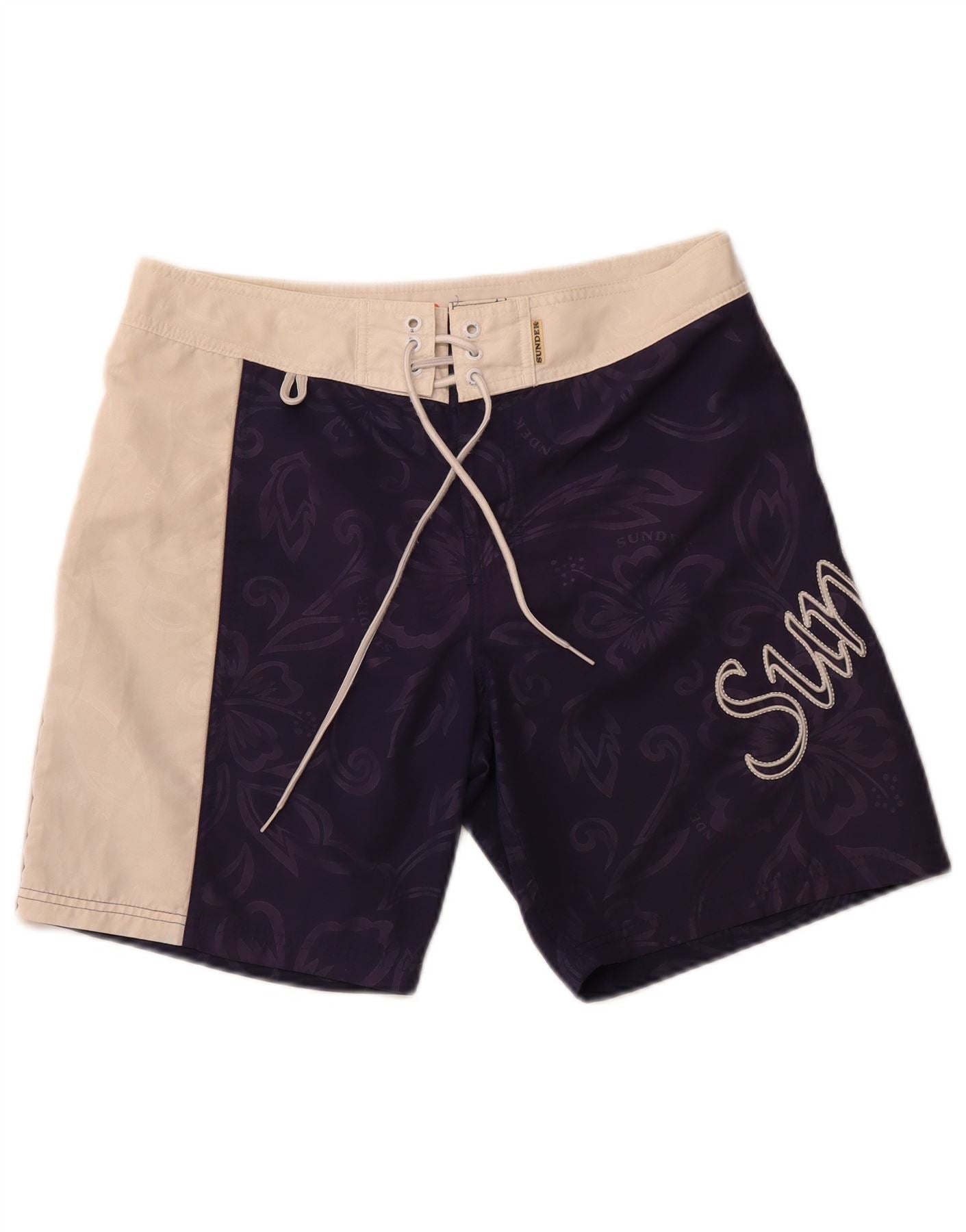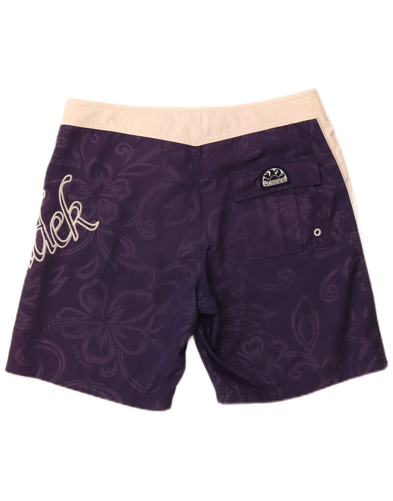 Pantaloni scurți de înot cu grafică pentru bărbați SUNDEK, poliester floral, albastru, mediu