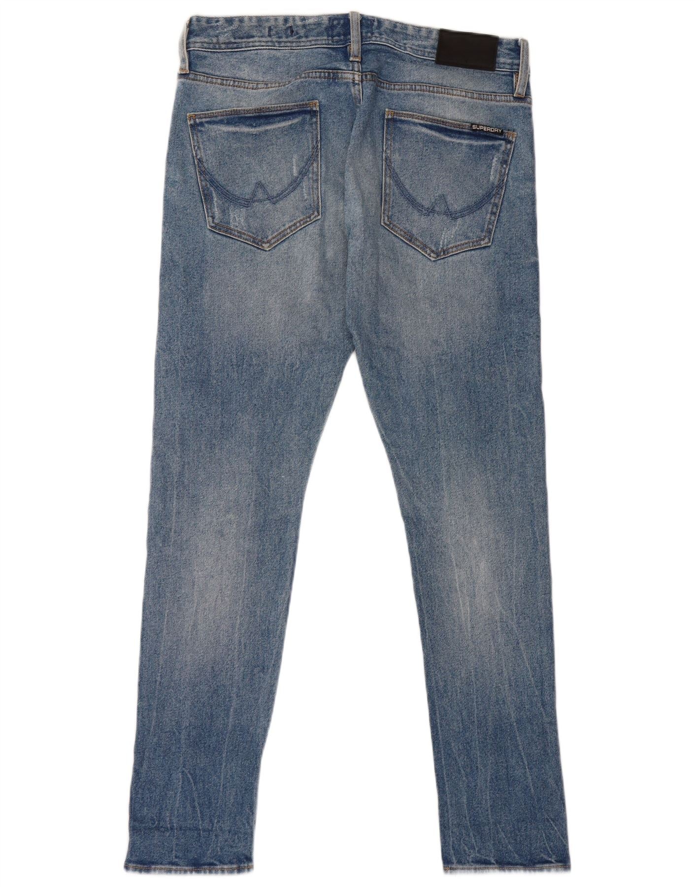 SUPERDRY Blugi skinny învechiți pentru bărbați W32 L30 bumbac albastru