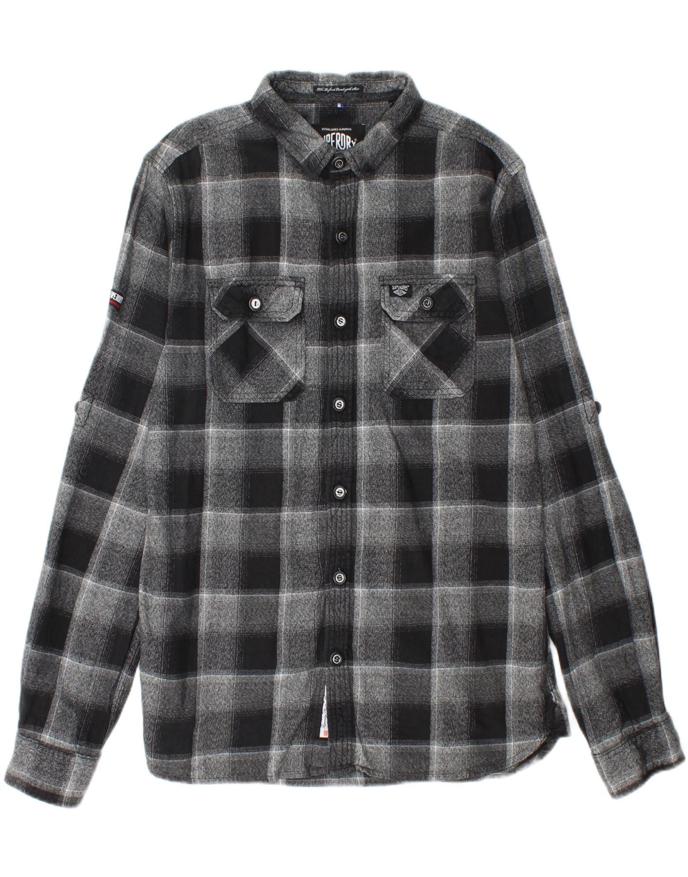 Cămașă de flanel pentru bărbați SUPERDRY XL, bumbac carouri gri