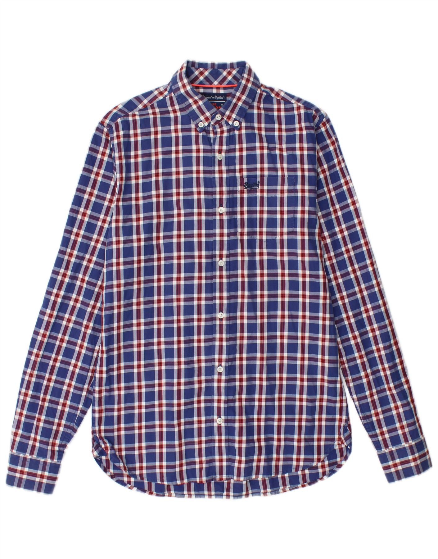 Cămașă de flanel pentru bărbați SUPERDRY XS, bumbac cu carouri bleumarin