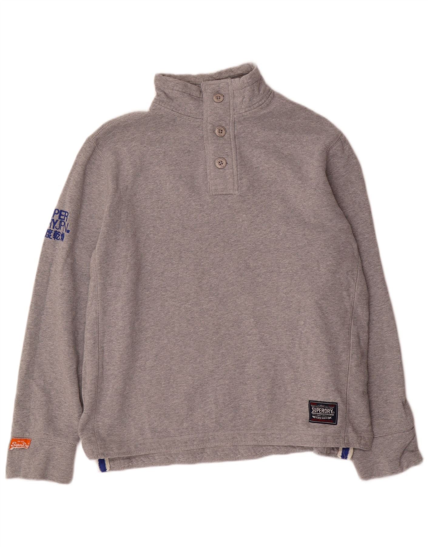 SUPERDRY Pulover pentru bărbați, cu grafică, cu gât cu nasturi, 2XL, gri pete