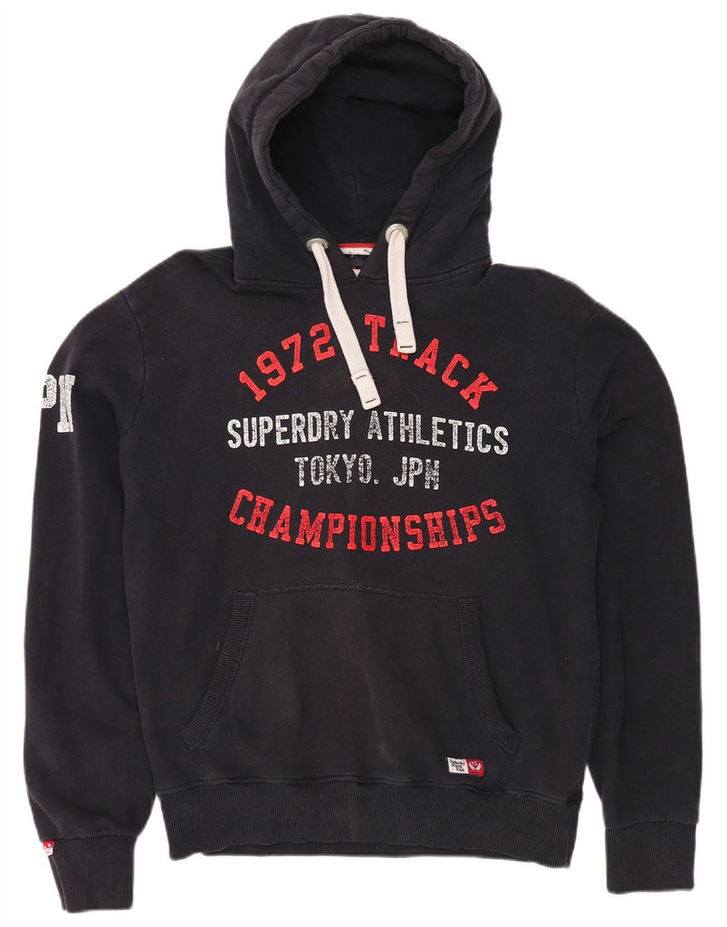 SUPERDRY Mens Graphic Hoodie Jumper Large Black Cotton