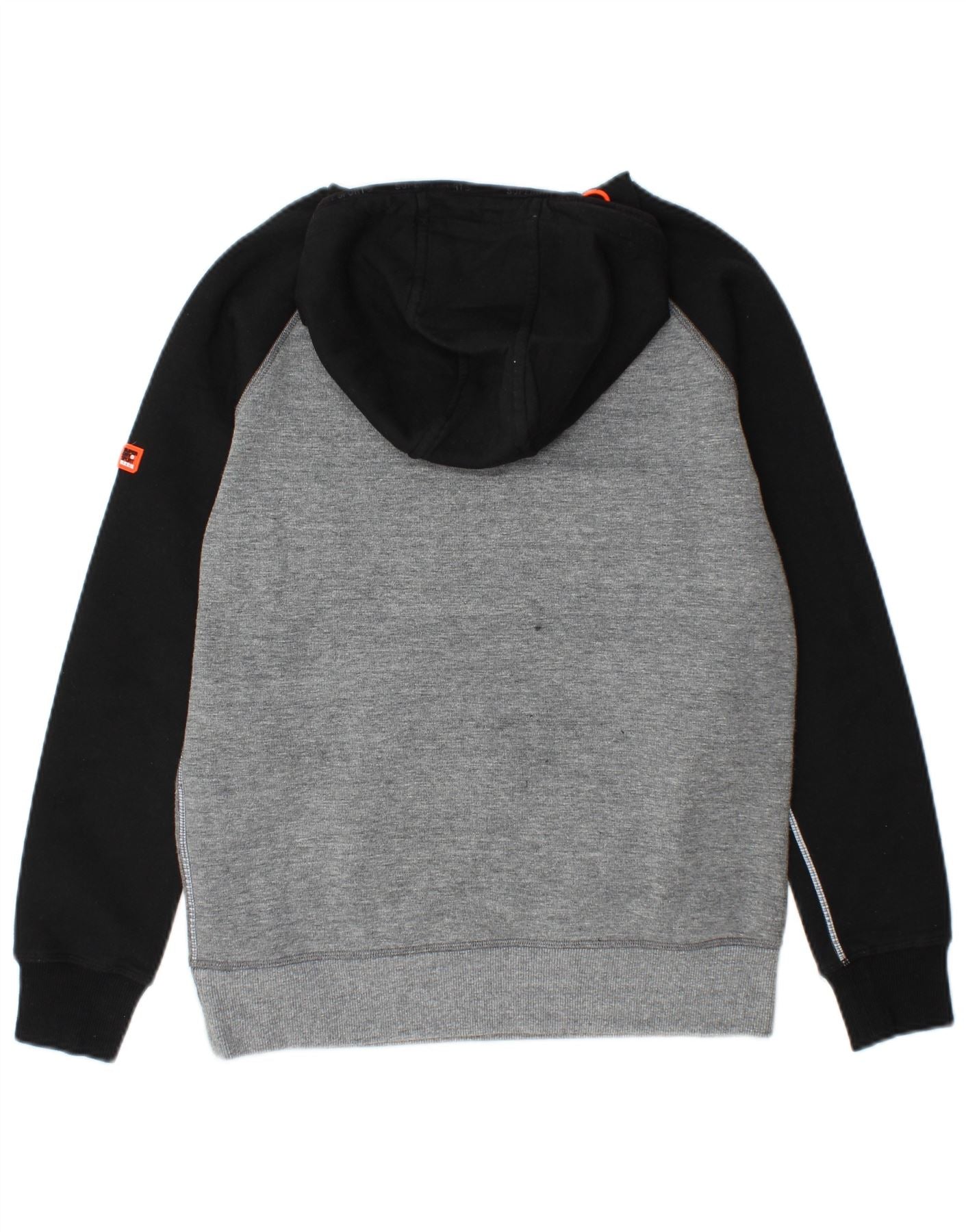 SUPERDRY Pulover cu glugă cu grafică pentru bărbați, bumbac, gri mic, bloc de culoare