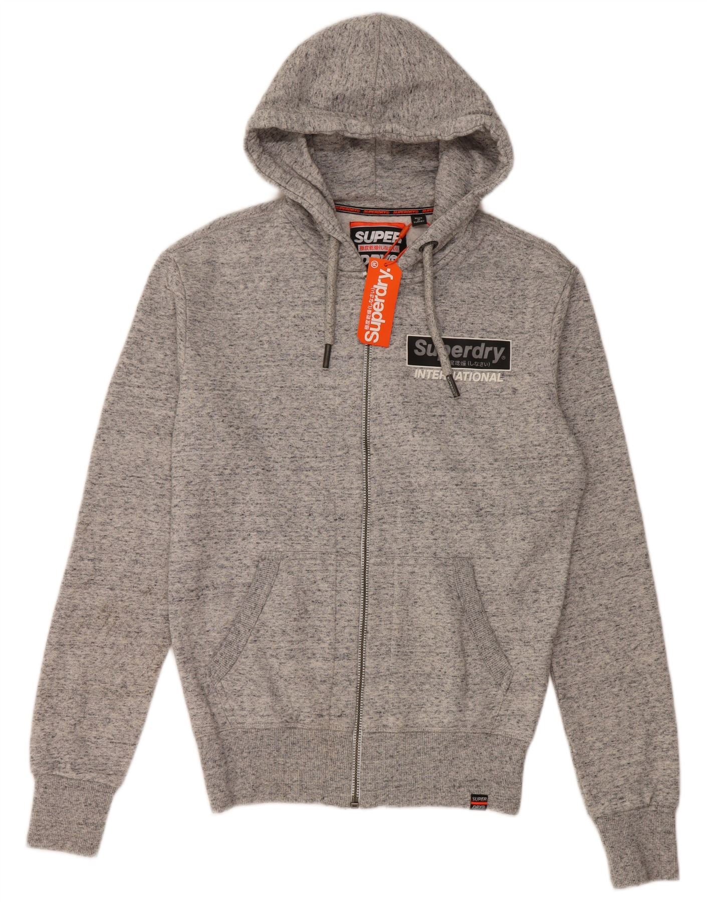 SUPERDRY Pulover cu capota cu fermoar cu grafic grafic pentru bărbați XS, bumbac cu pete gri
