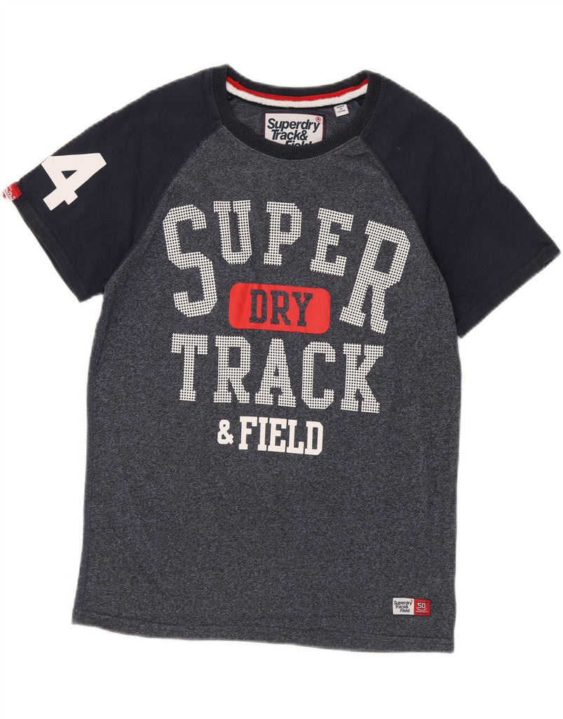 SUPERDRY Mens Graphic T-Shirt Top Medium Navy Blue Colourblock Cotton