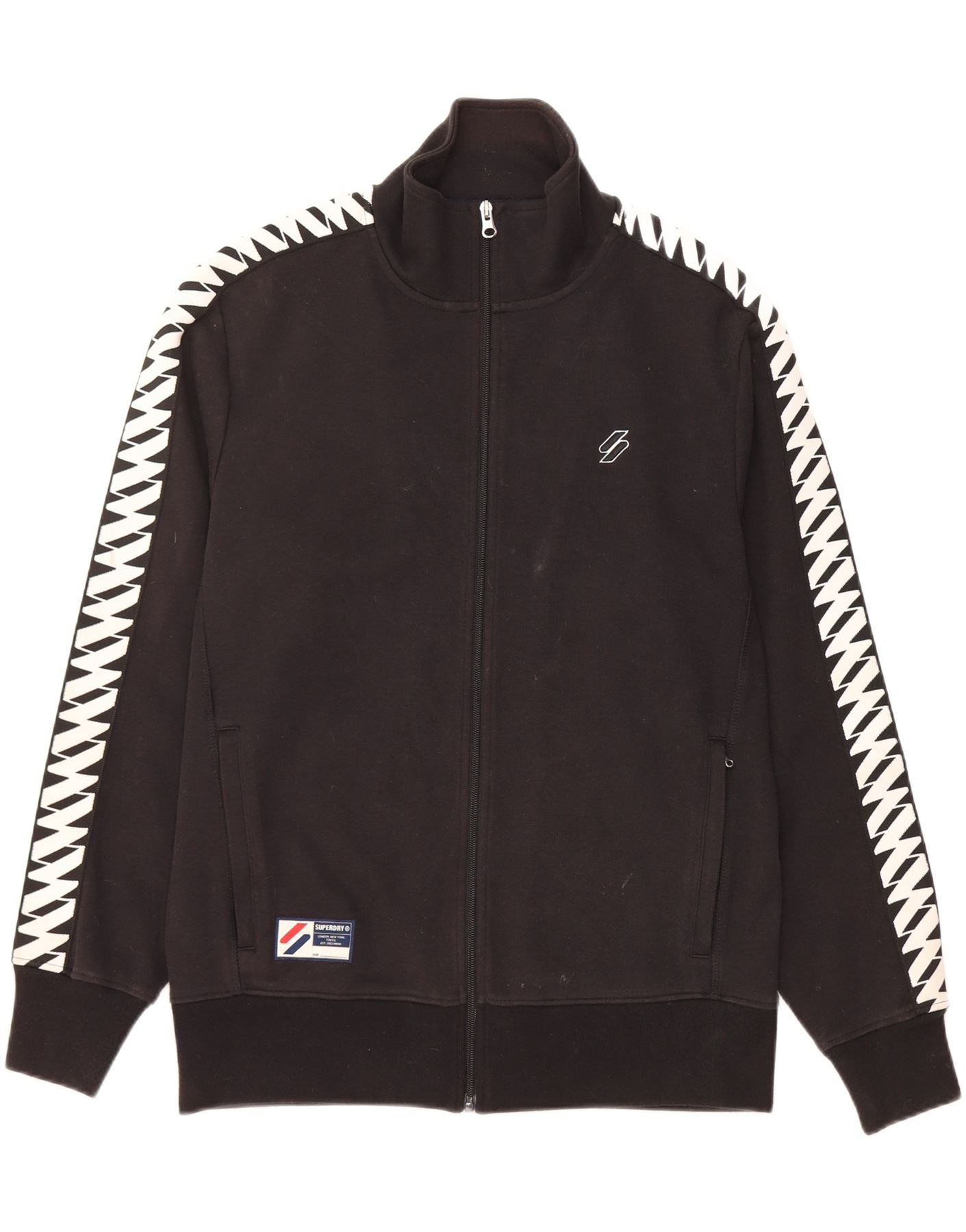 SUPERDRY Mens Graphic Tracksuit Top Jacket Medium Black Colourblock Cotton