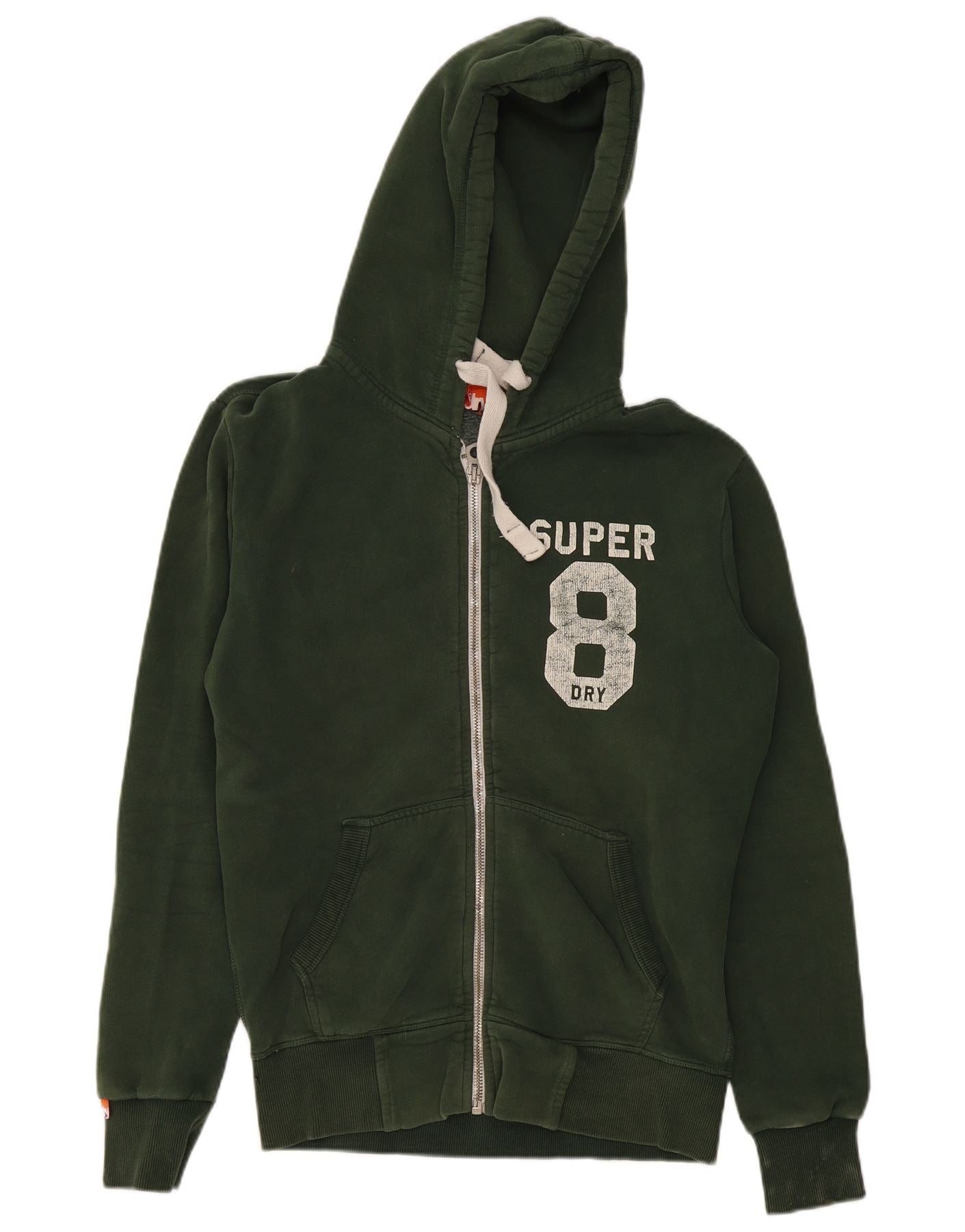 SUPERDRY Pulover cu capota cu fermoar grafic pentru bărbați, kaki mediu
