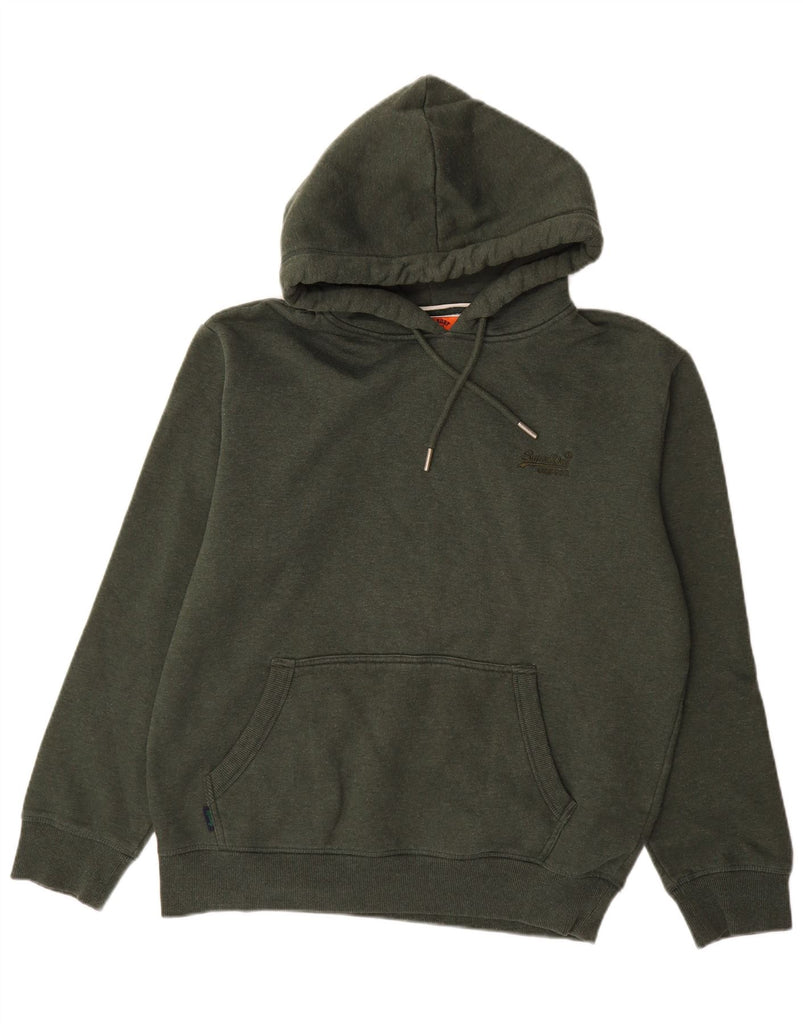 - AI Description: This Superdry men's hoodie jumper is crafted from soft green fleece, offering warmth and comfort. It features a classic hooded design with an adjustable drawstring for a custom fit. The pullover style includes a round neck and long sleeves. A prominent logo accent adds signature branding. Front pockets provide practical storage. The regular fit ensures a comfortable, versatile silhouette.