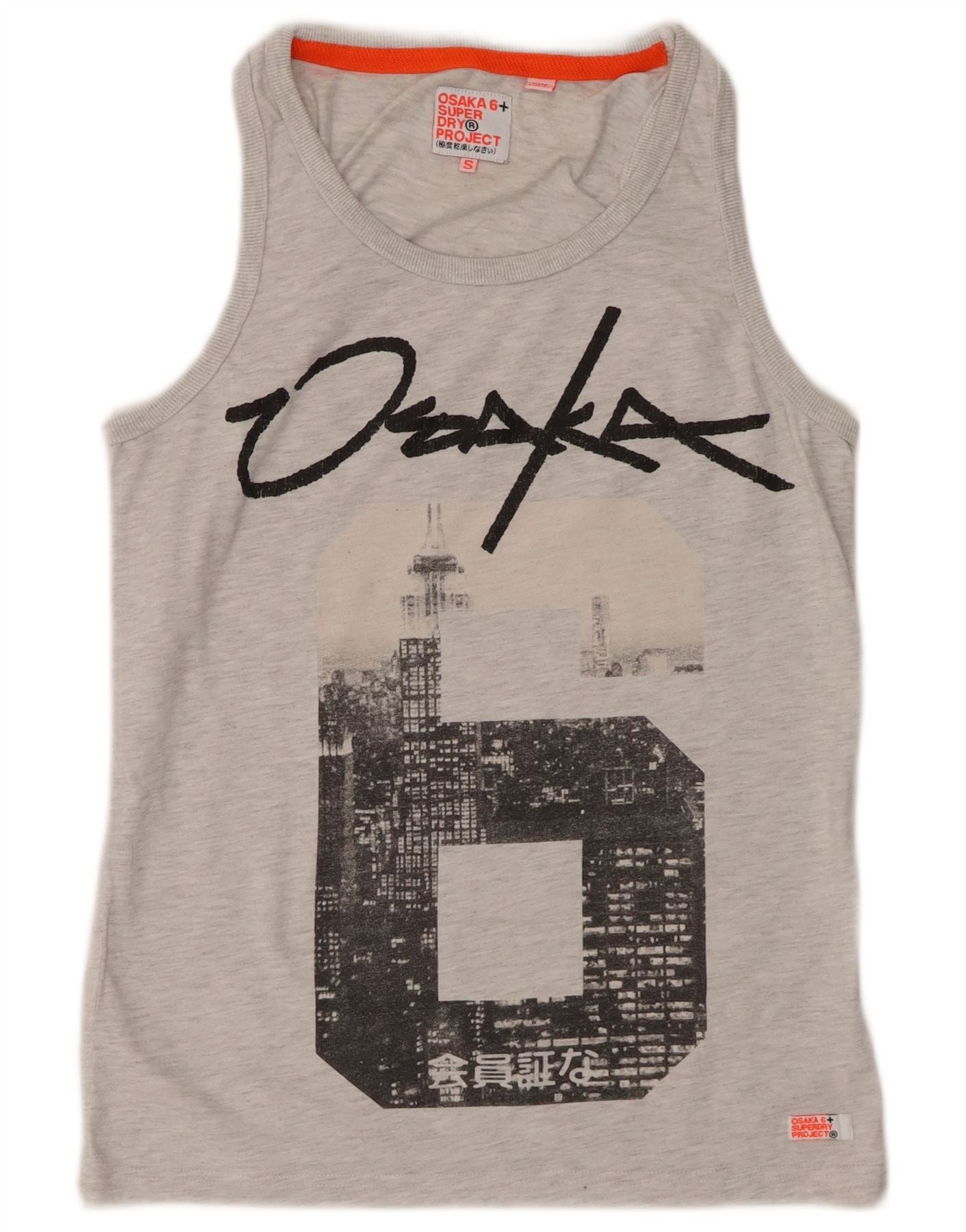 SUPERDRY Vestă grafică Osaka pentru bărbați, bumbac mic, gri cu pete
