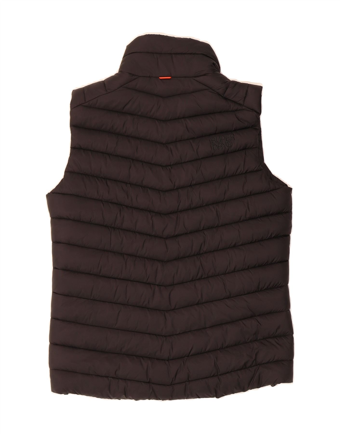 - AI Description: This Superdry men's waistcoat offers modern style and lightweight warmth. Crafted from 100% polyester with a down-feel fabric, it features a full zip closure, collared neckline, and a regular fit. Accented with a logo, it includes zipped pockets for practicality. While pre-owned in excellent condition, there are minor defects: loose stitching on the zipper area and backside, and stains on the tag area. Machine washable. Size M.