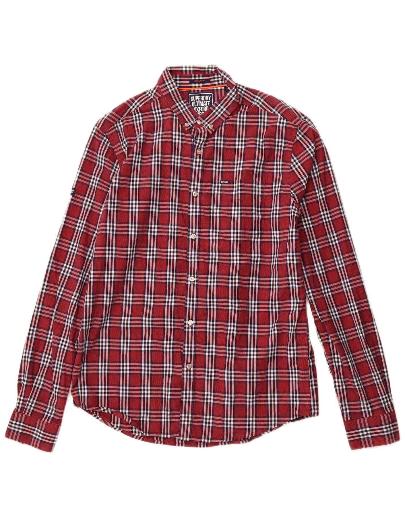 Cămașă pentru bărbați SUPERDRY, cu tăiere obișnuită, din bumbac cu carouri burgundy