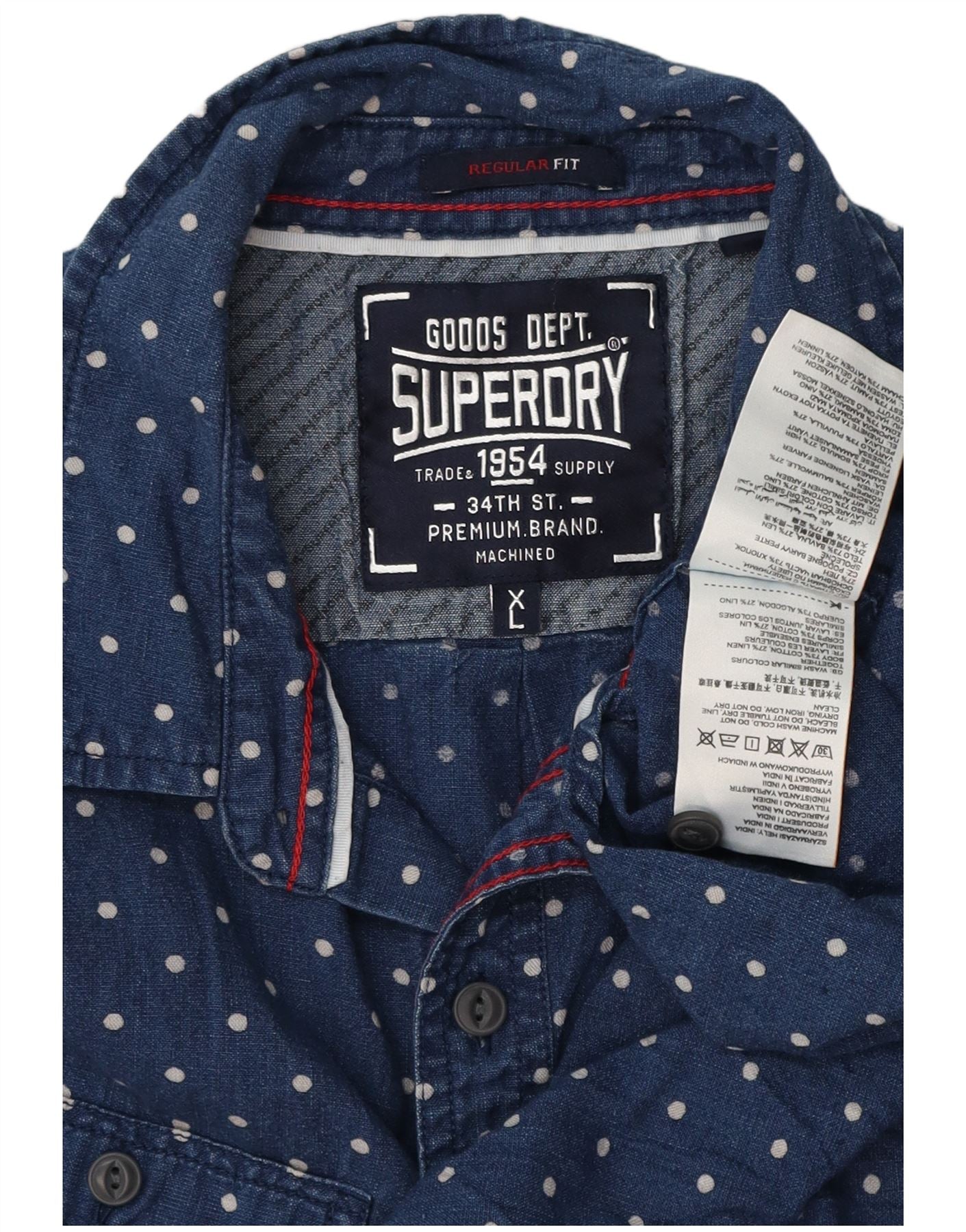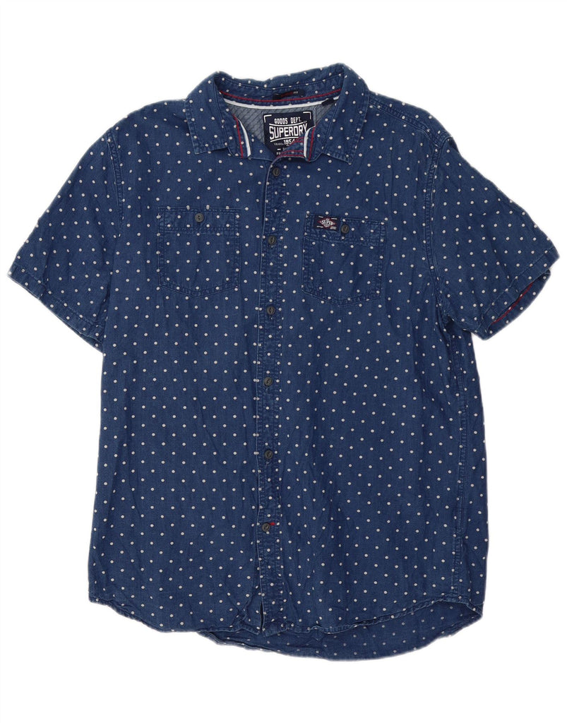Cămașă cu mânecă scurtă pentru bărbați SUPERDRY, XL, bumbac cu pete albastre