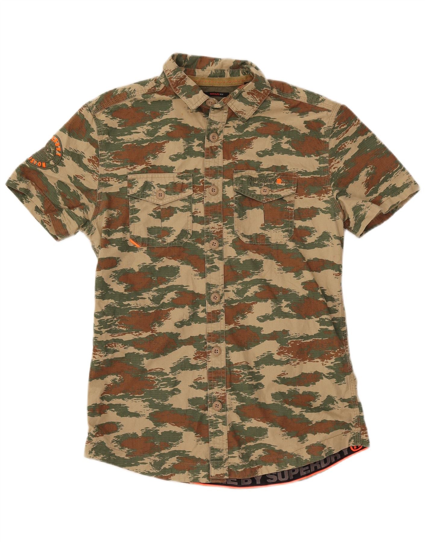 Cămașă pentru bărbați SUPERDRY cu mânecă scurtă, cu formă obișnuită, bumbac camuflaj kaki mic