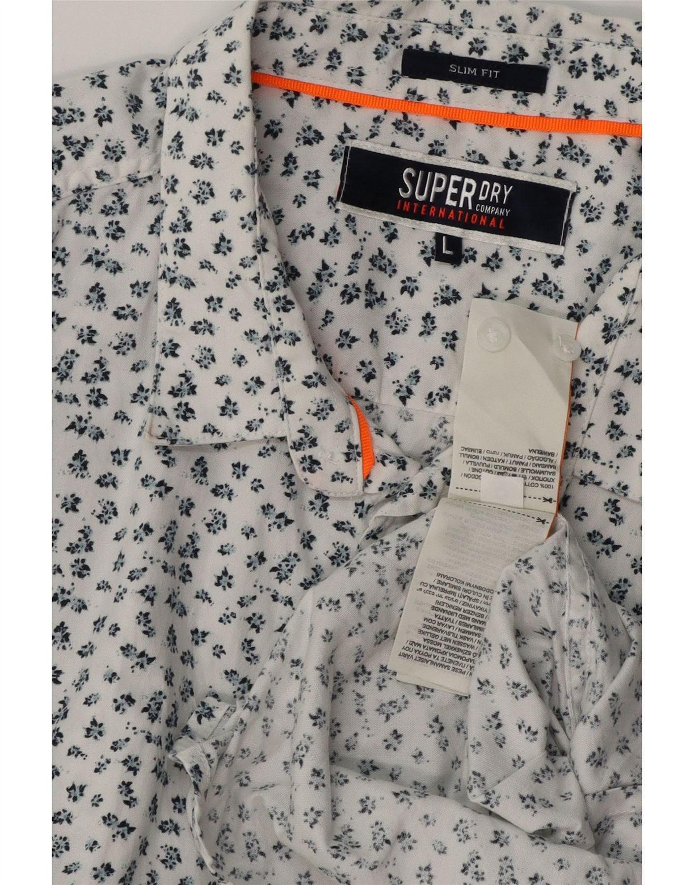 Cămașă pentru bărbați SUPERDRY Slim Fit, mare, alb, cu flori din bumbac