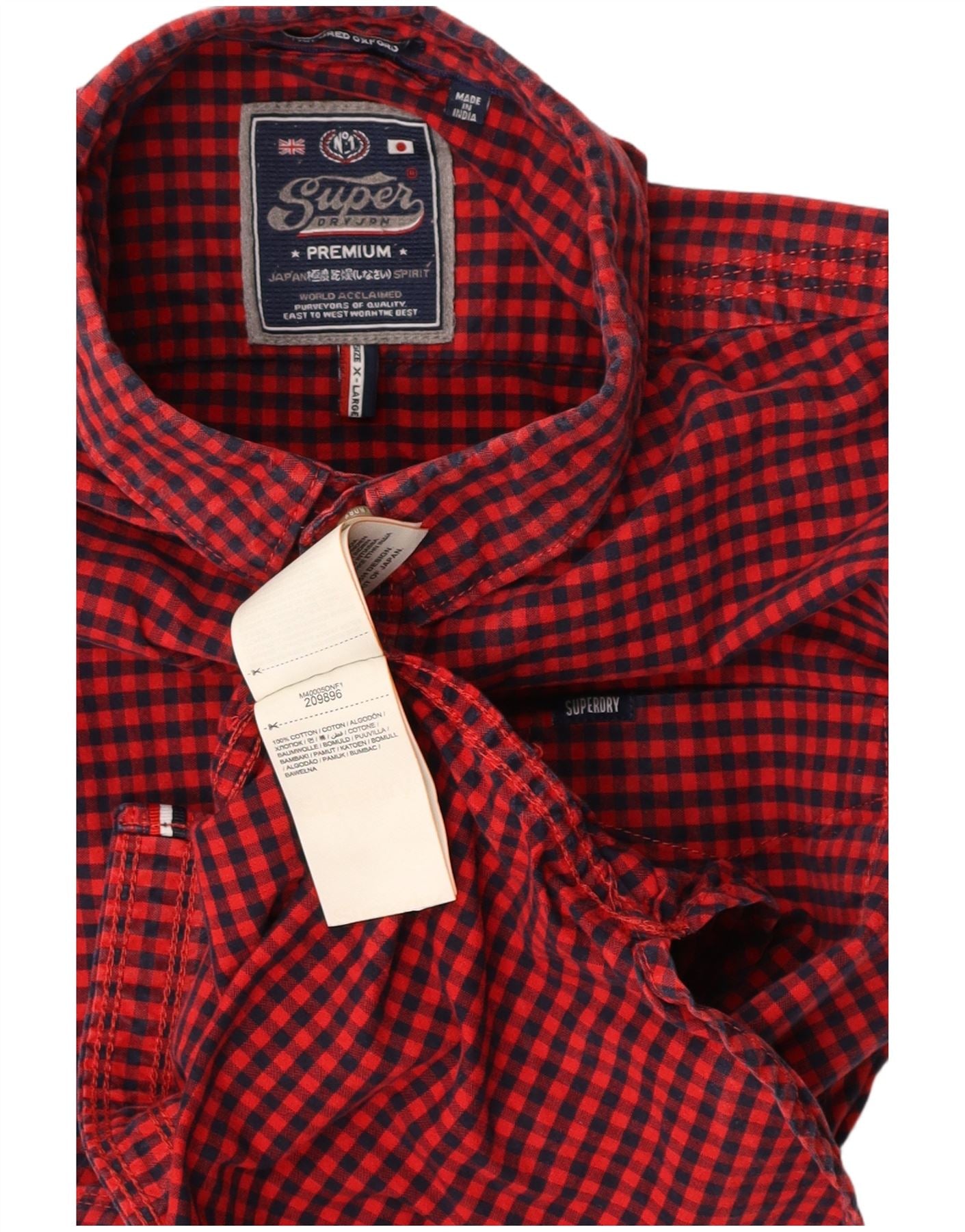 Cămașă de flanel croită pentru bărbați SUPERDRY XL, bumbac vichy roșu