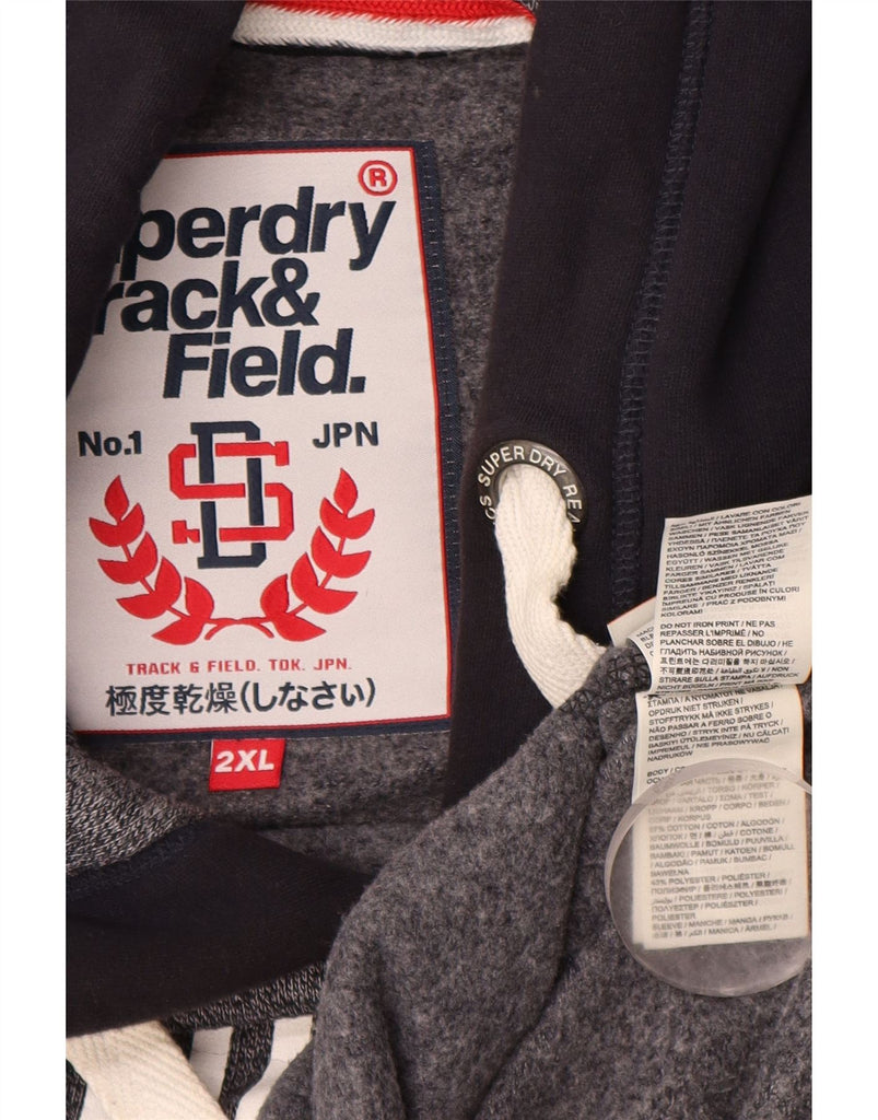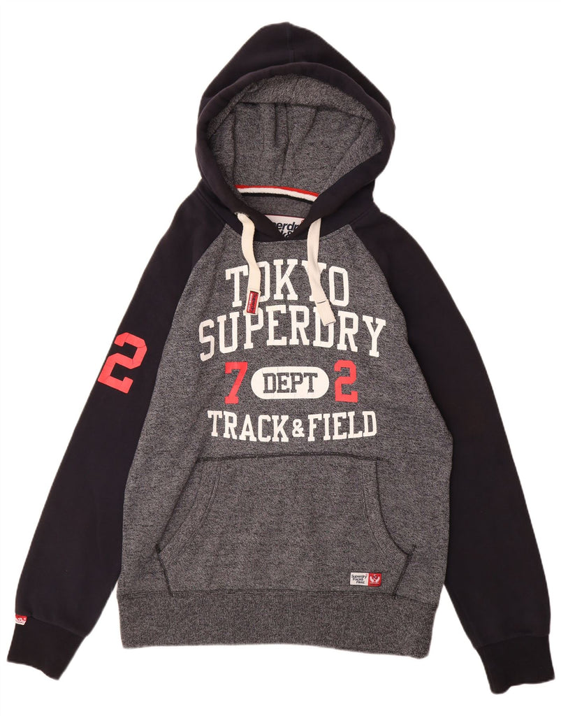 SUPERDRY Mens Tokyo Graphic Hoodie Jumper 2XL Grey Colourblock Cotton