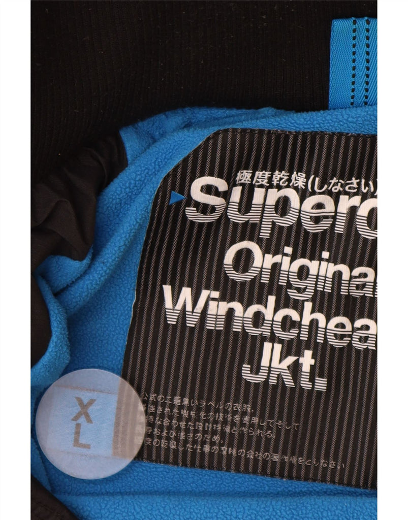 SUPERDRY Mens Windcheater Hooded Windbreaker Jacket UK 42 XL Black Nylon