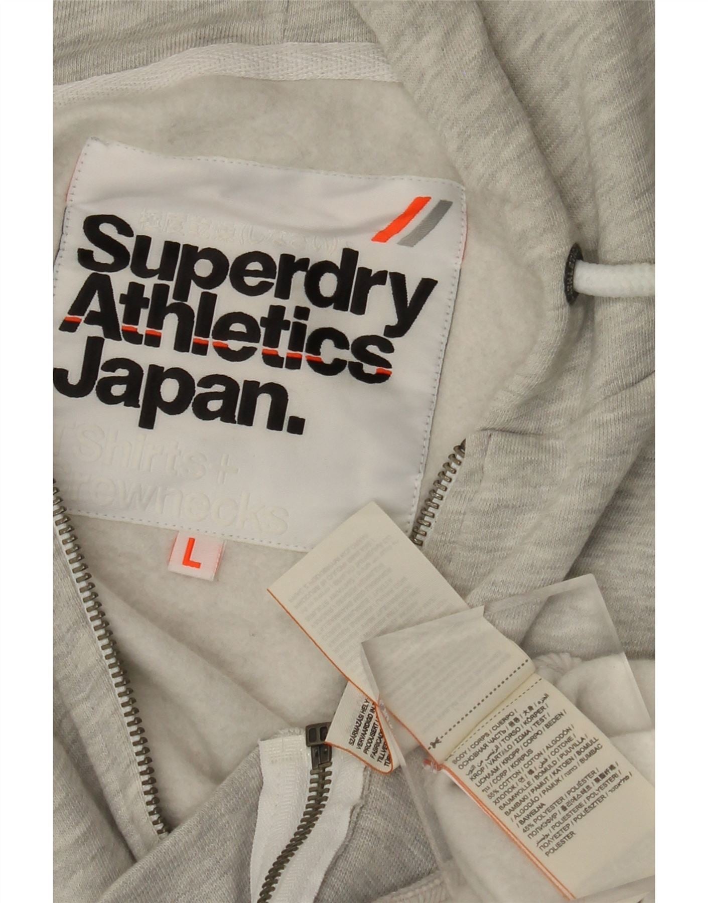 SUPERDRY Pulover cu capota cu fermoar pentru bărbați, mare, gri bumbac cu pete