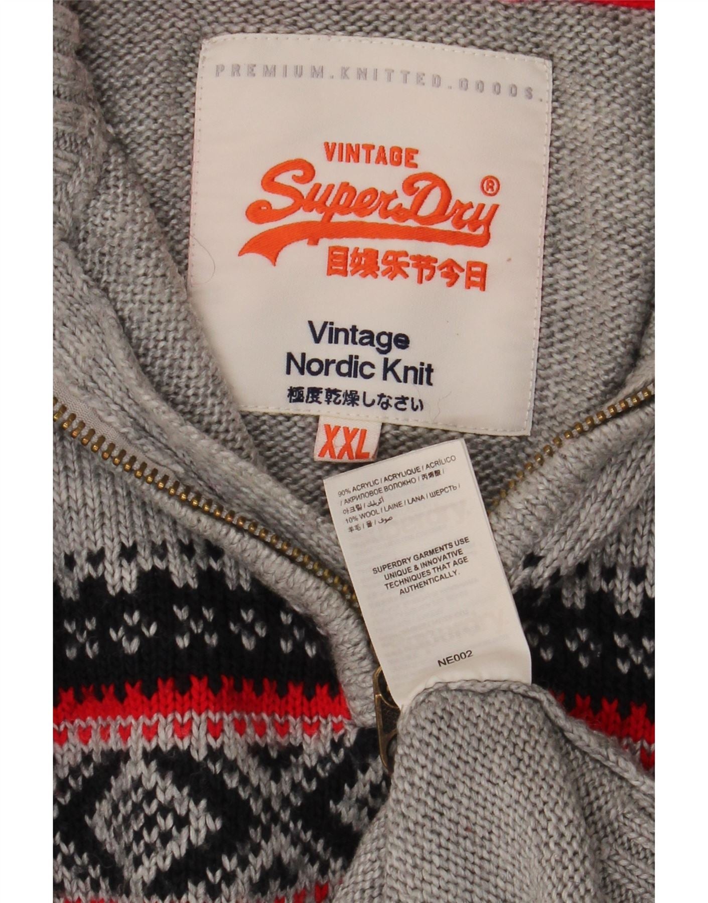 Pulover Superdry pentru bărbați, cu fermoar și gât, 2XL, gri Fair Isle Acrilic