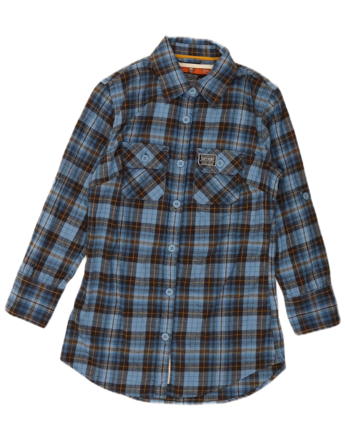 Cămașă de flanel pentru femei SUPERDRY cu mâneci 3/4 UK 10, bumbac cu carouri albastre mici
