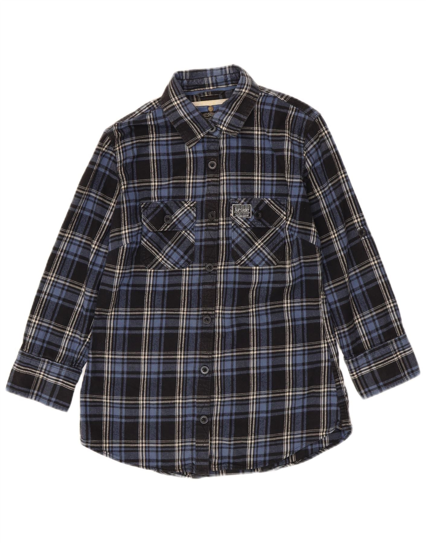 Home > Femei > Îmbrăcăminte Depop > Cămașă de flanel cu mâneci 3/4 pentru femei SUPERDRY UK 14 Medium bleumarin Check