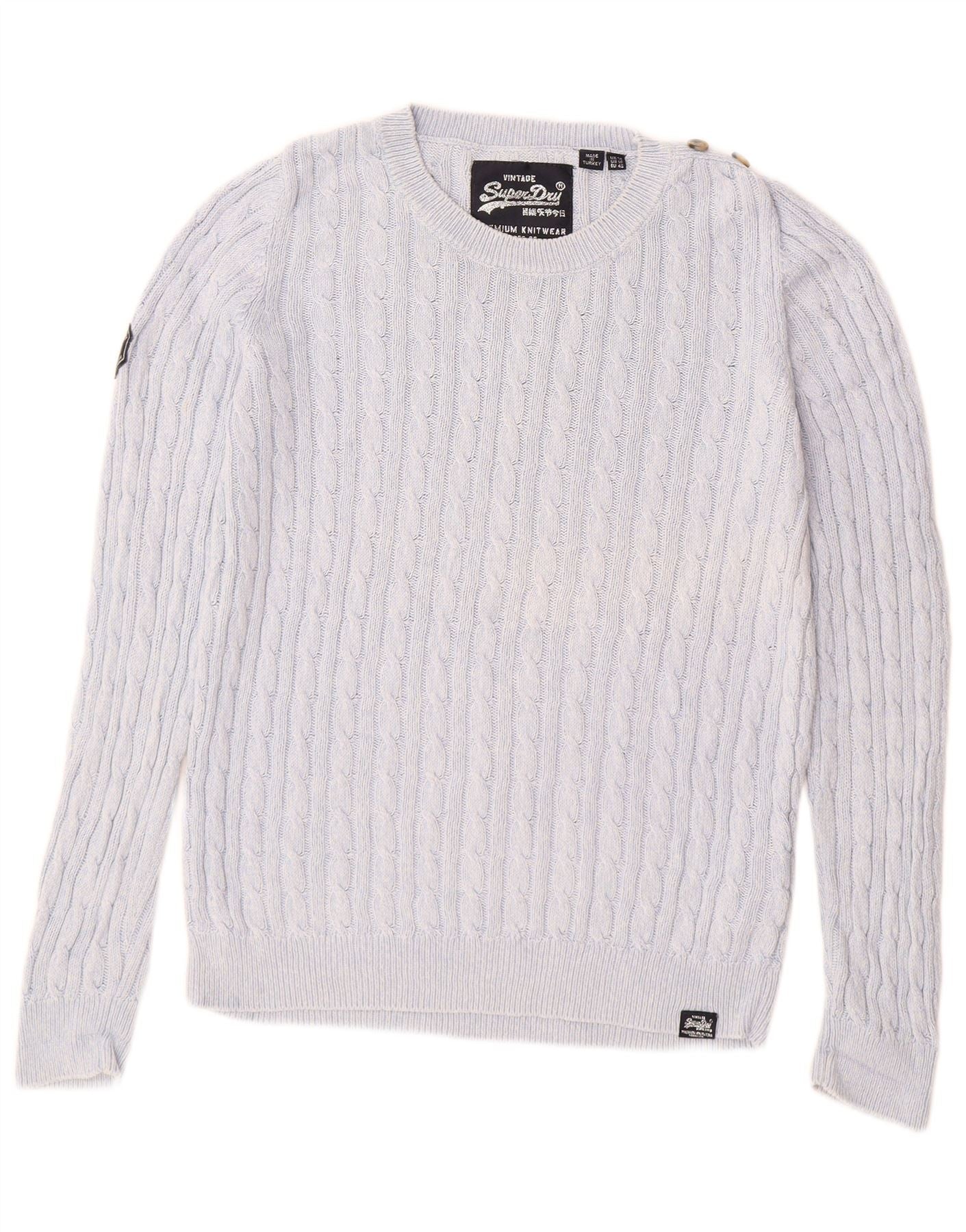 Pulover de damă SUPERDRY cu gât de barcă din bumbac mare albastru UK 14