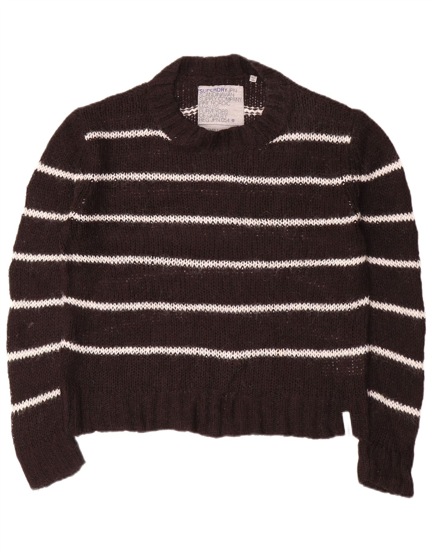 Pulover Superdry pentru femei cu decolteu rotund, cu dungi mici, negru, UK 10
