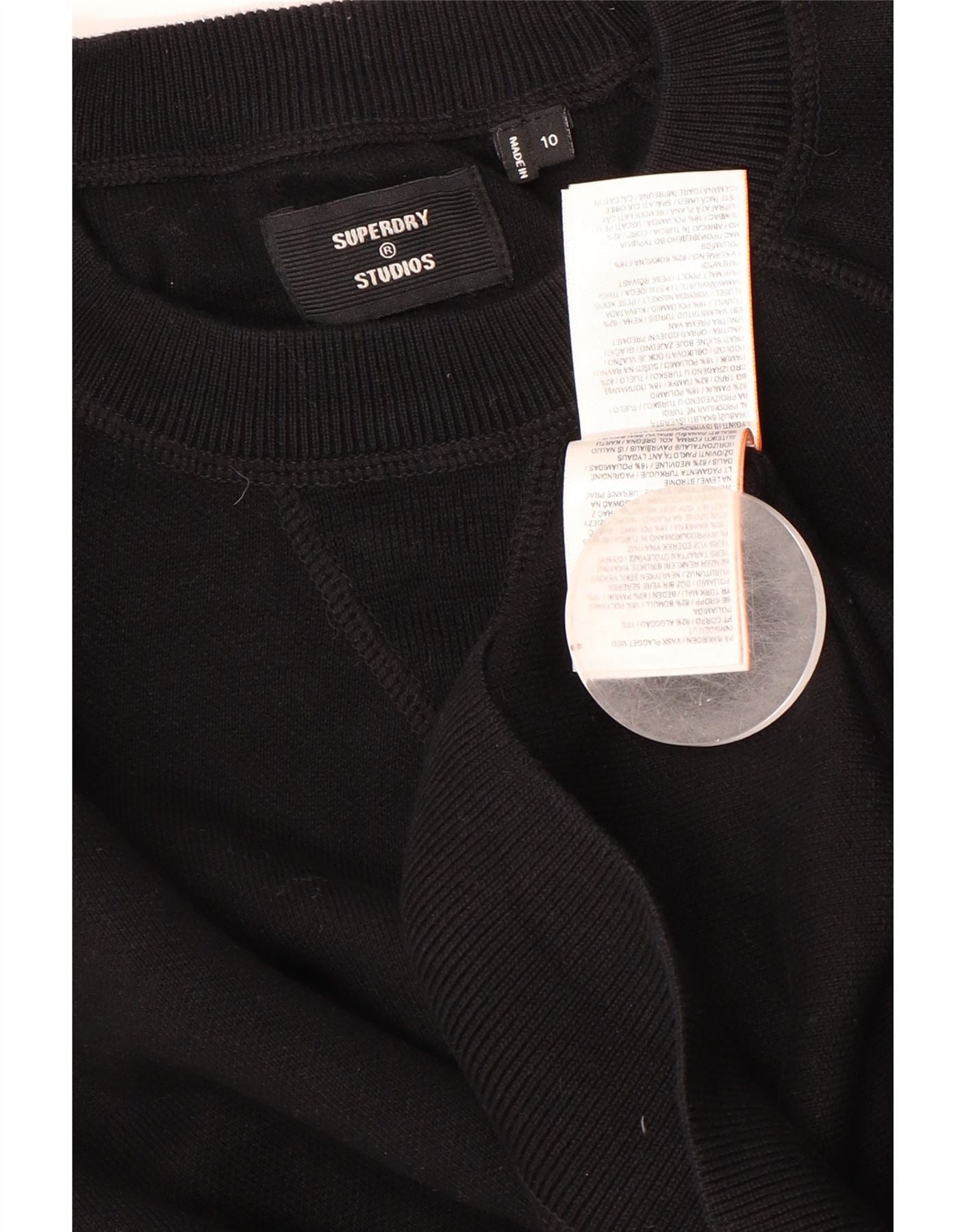 SUPERDRY Pulover oversize crop pentru femei UK 10 Bumbac negru mic