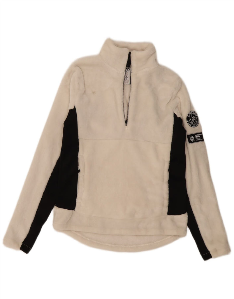 SUPERDRY Womens Graphic Fleece Jumper UK 10 Small White Colourblock