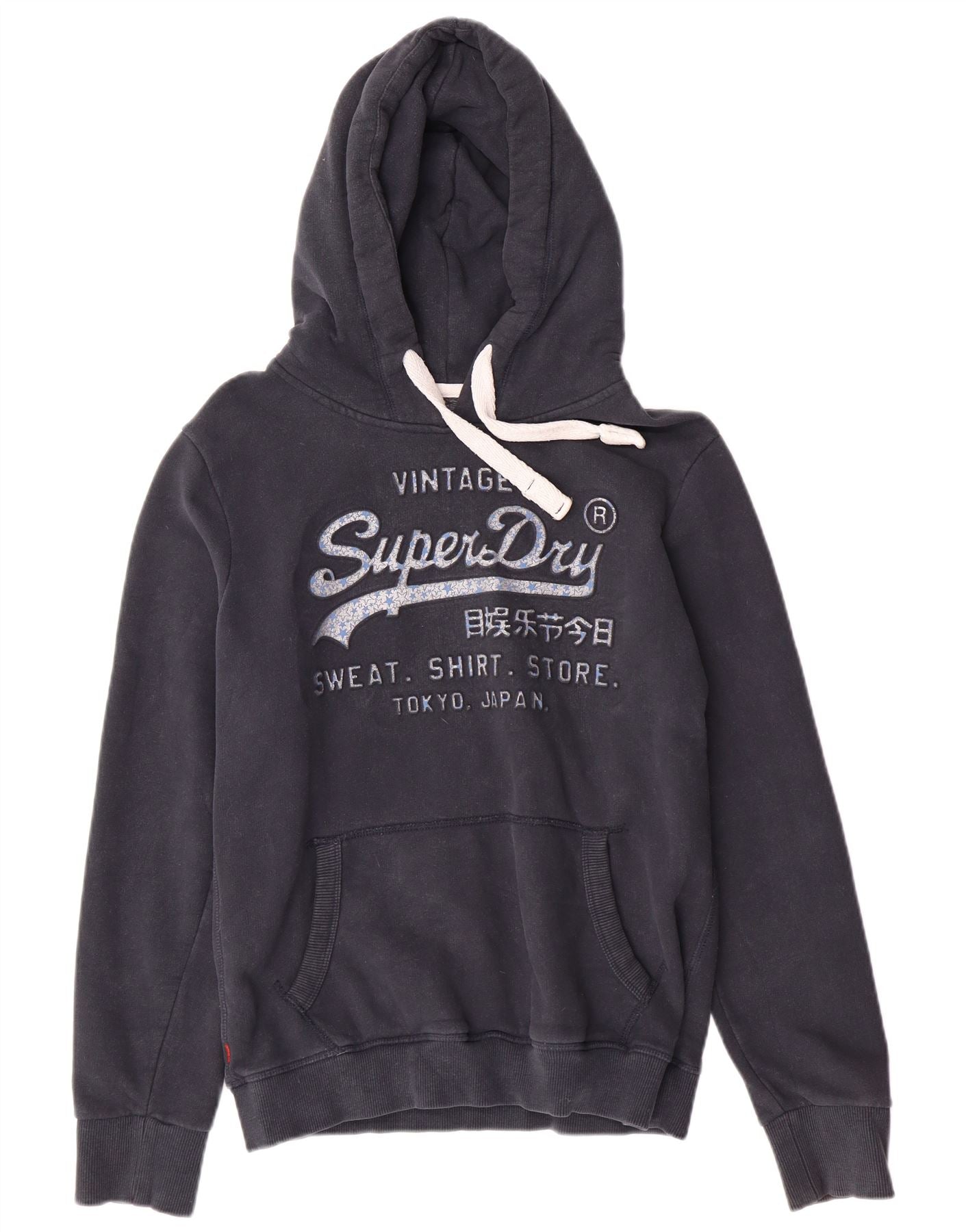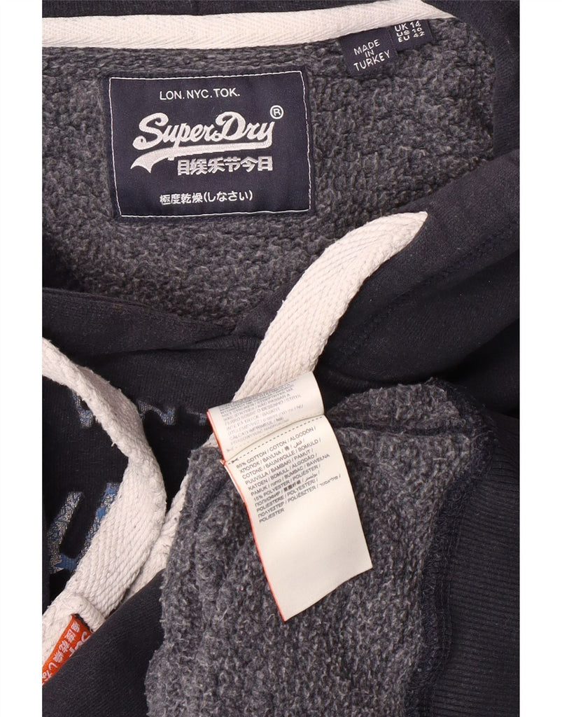 SUPERDRY Pulover cu glugă cu grafic pentru femei UK 14 mare bumbac bleumarin