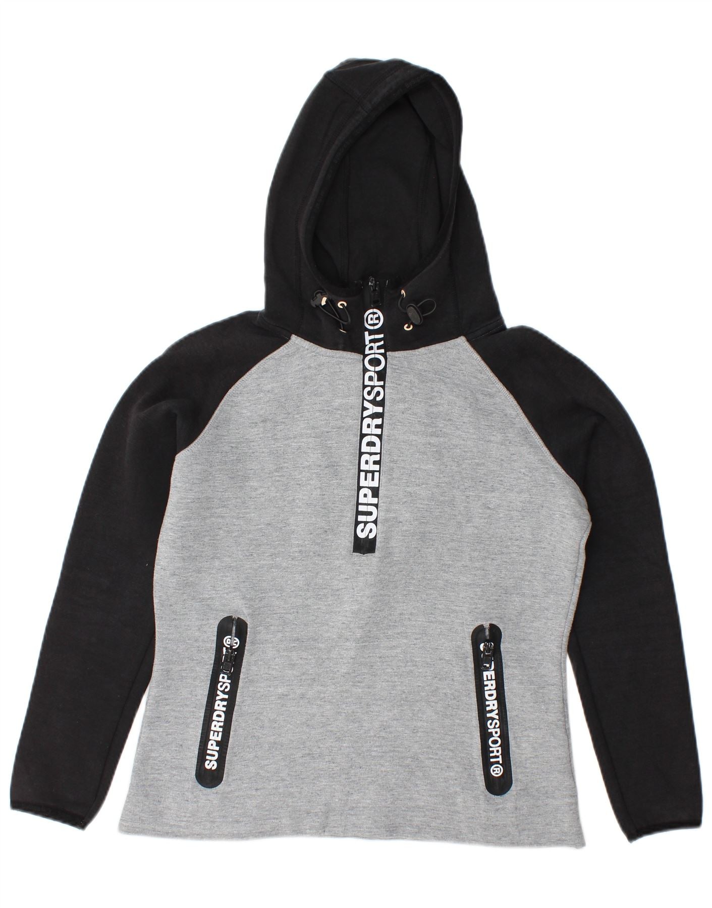 SUPERDRY Pulover cu glugă grafic pentru femei UK 14 Medium Gri Colorblock