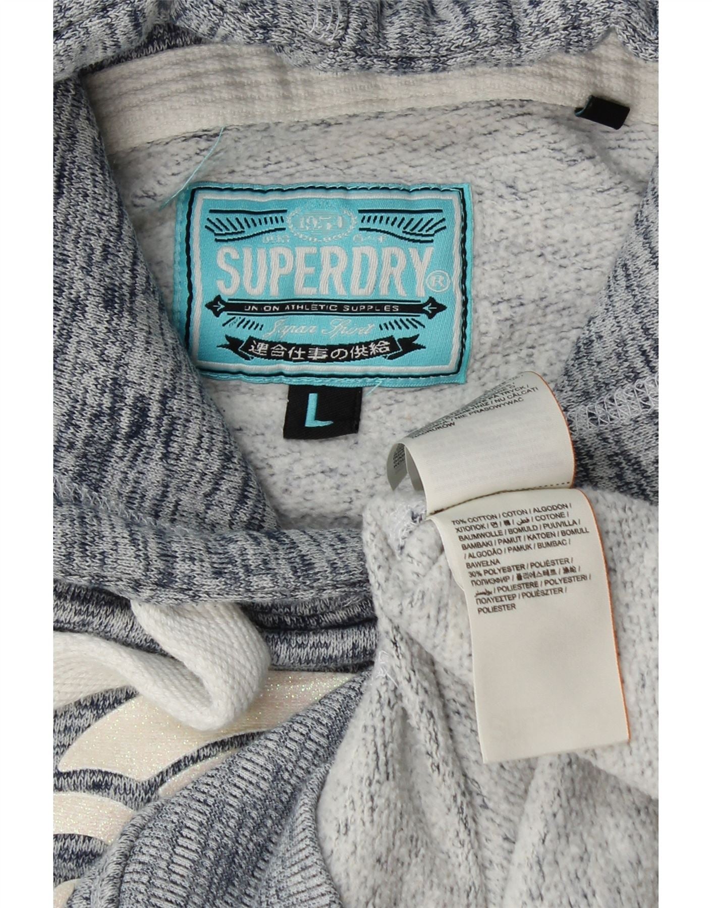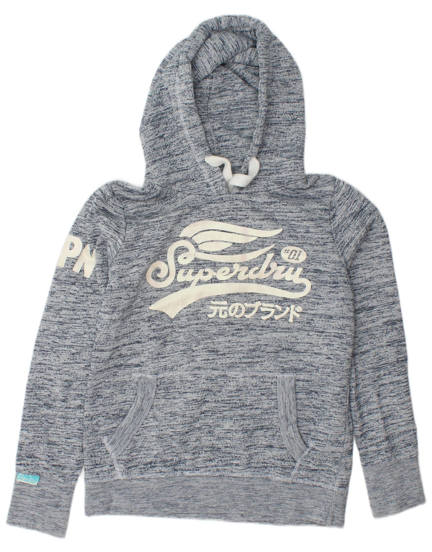 SUPERDRY Pulover cu glugă cu grafic pentru femei UK 16 mare, albastru marin, bumbac cu pete