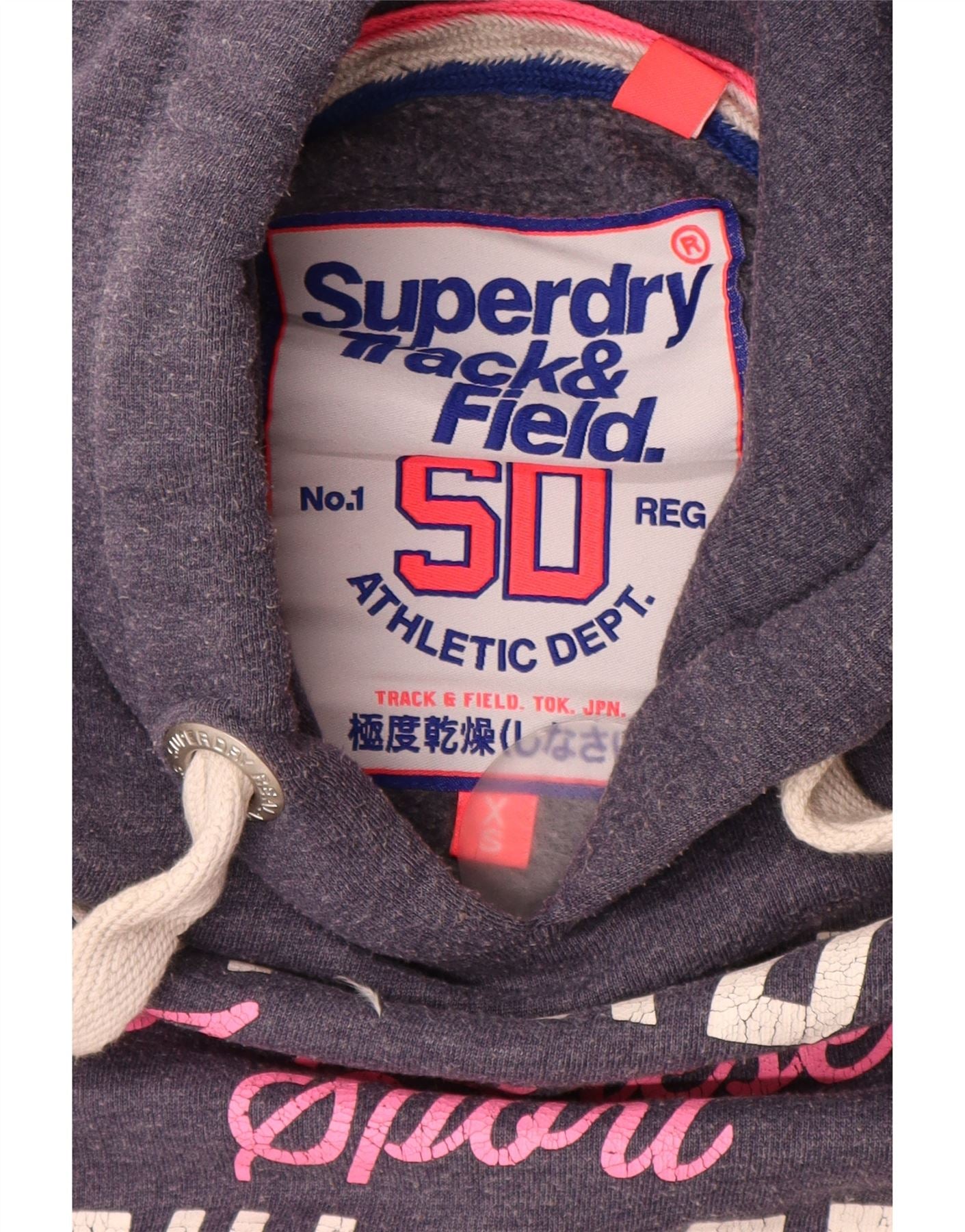 SUPERDRY Pulover cu glugă cu grafic pentru femei UK 6 XS Bumbac bleumarin