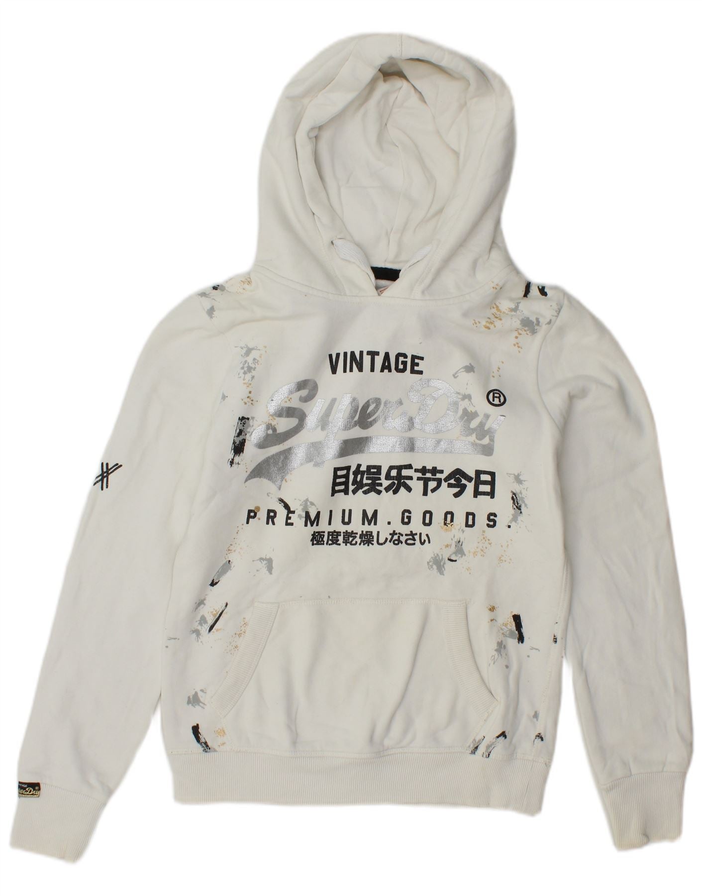 SUPERDRY Pulover cu glugă cu grafic pentru femei UK 6 XS Bumbac alb