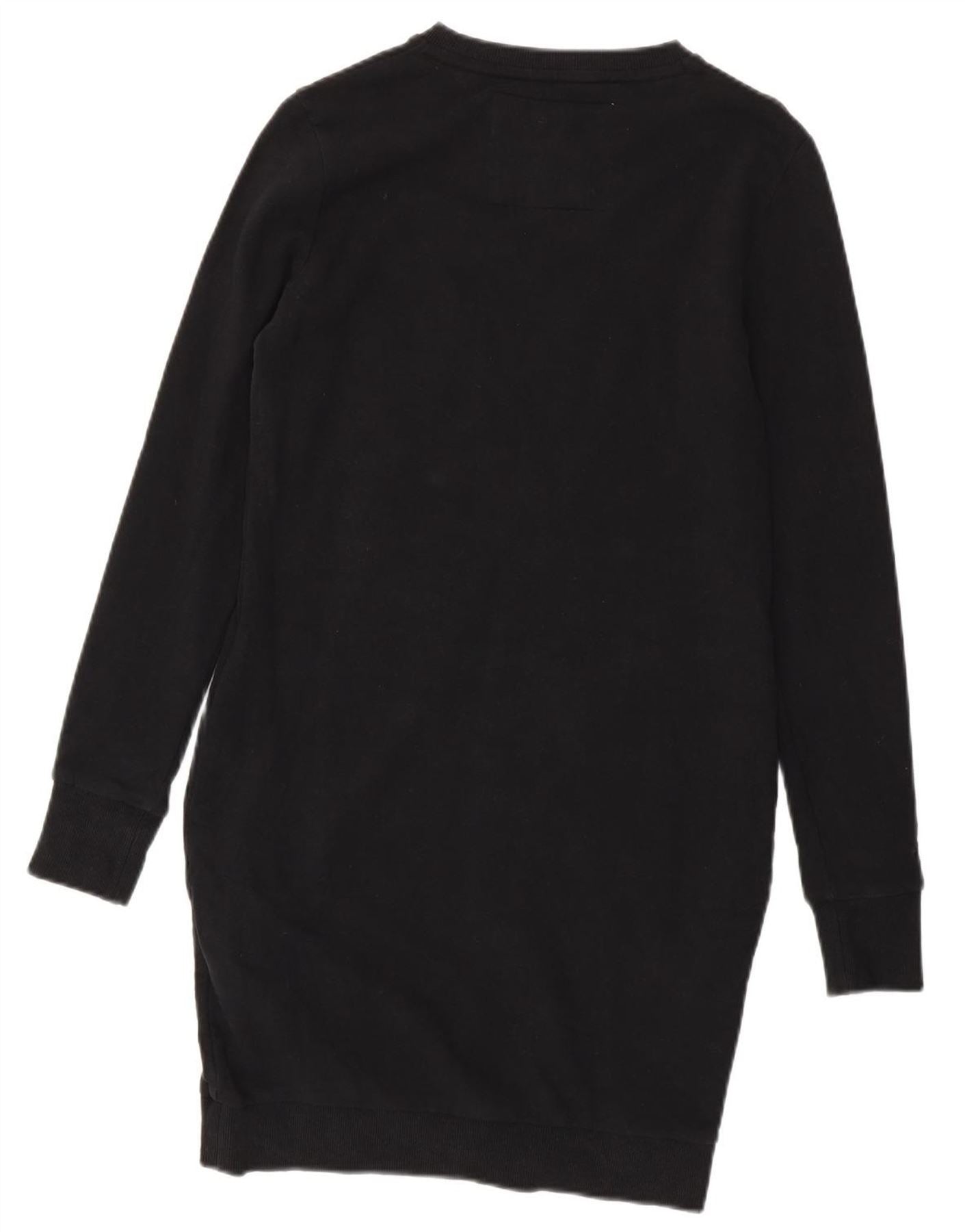 SUPERDRY rochie pulover cu grafic pentru femei UK 12 bumbac mediu negru