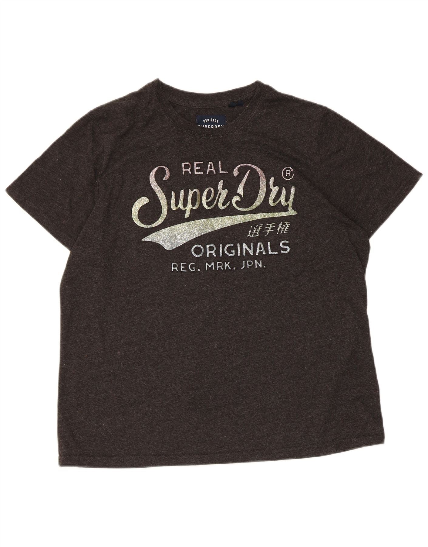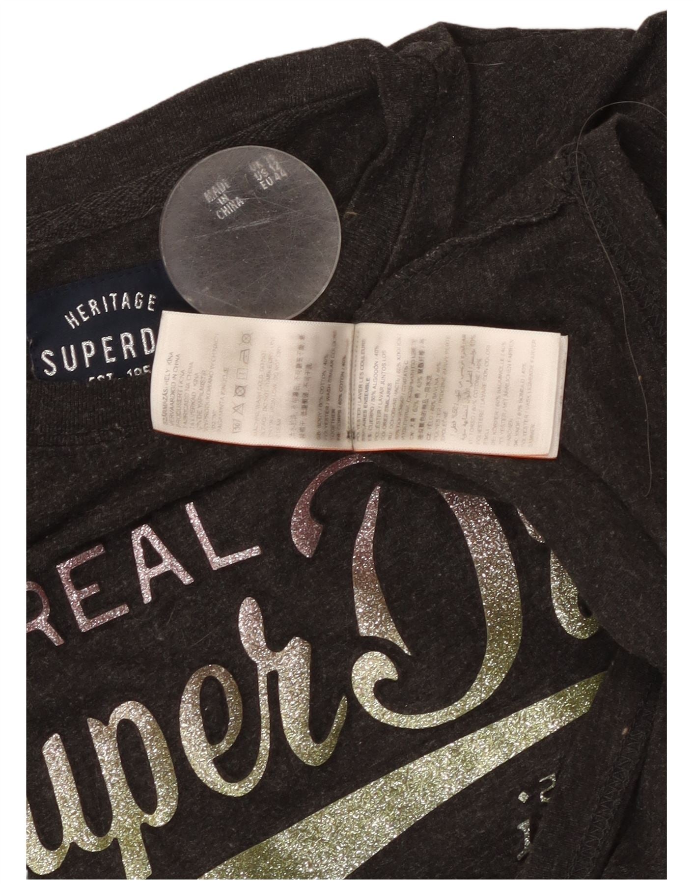 Tricou grafic SUPERDRY pentru femei Top UK 16 mare, gri bumbac cu pete