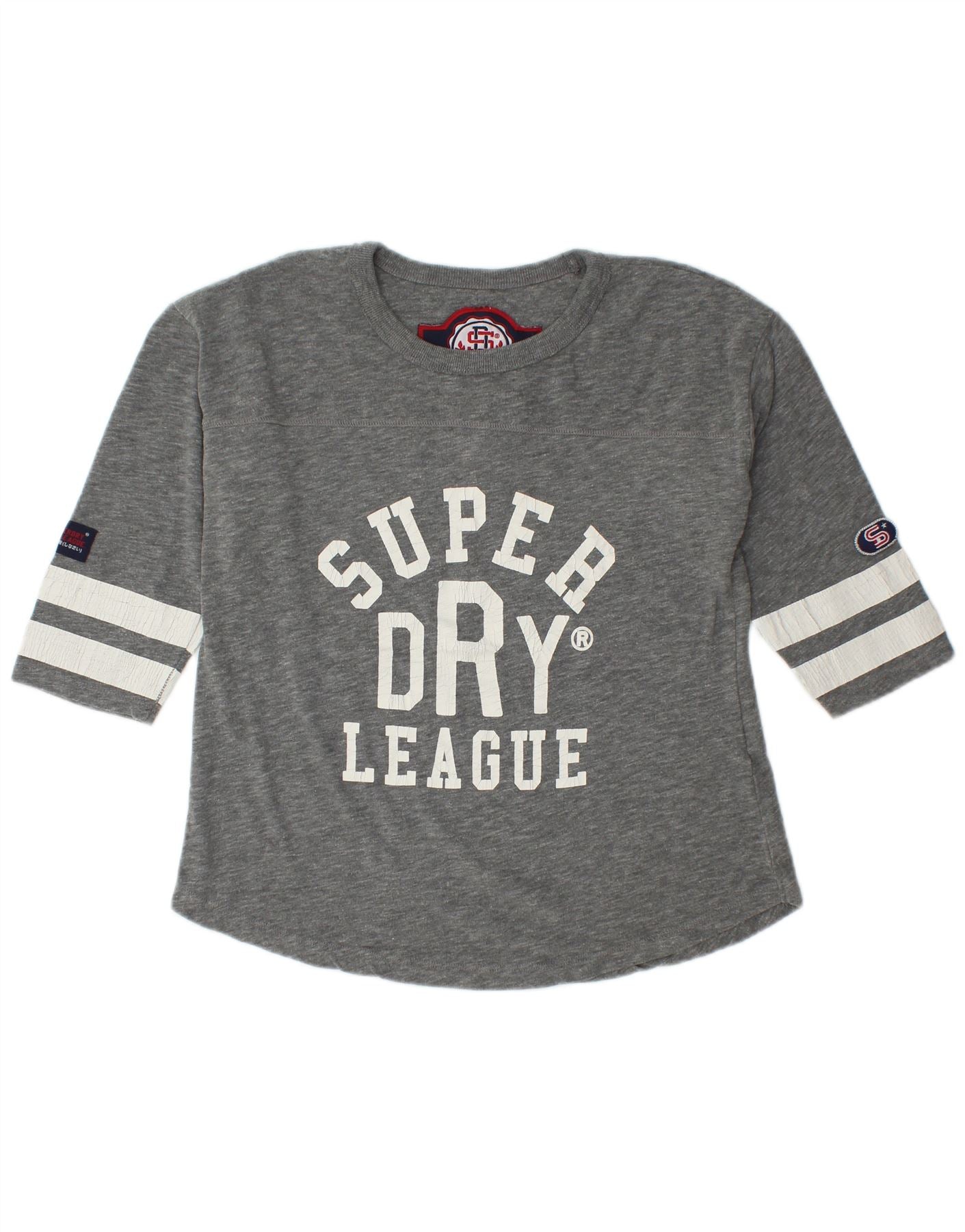 Top grafic Superdry pentru femei cu mâneci 3/4 UK 14, bumbac gri mediu