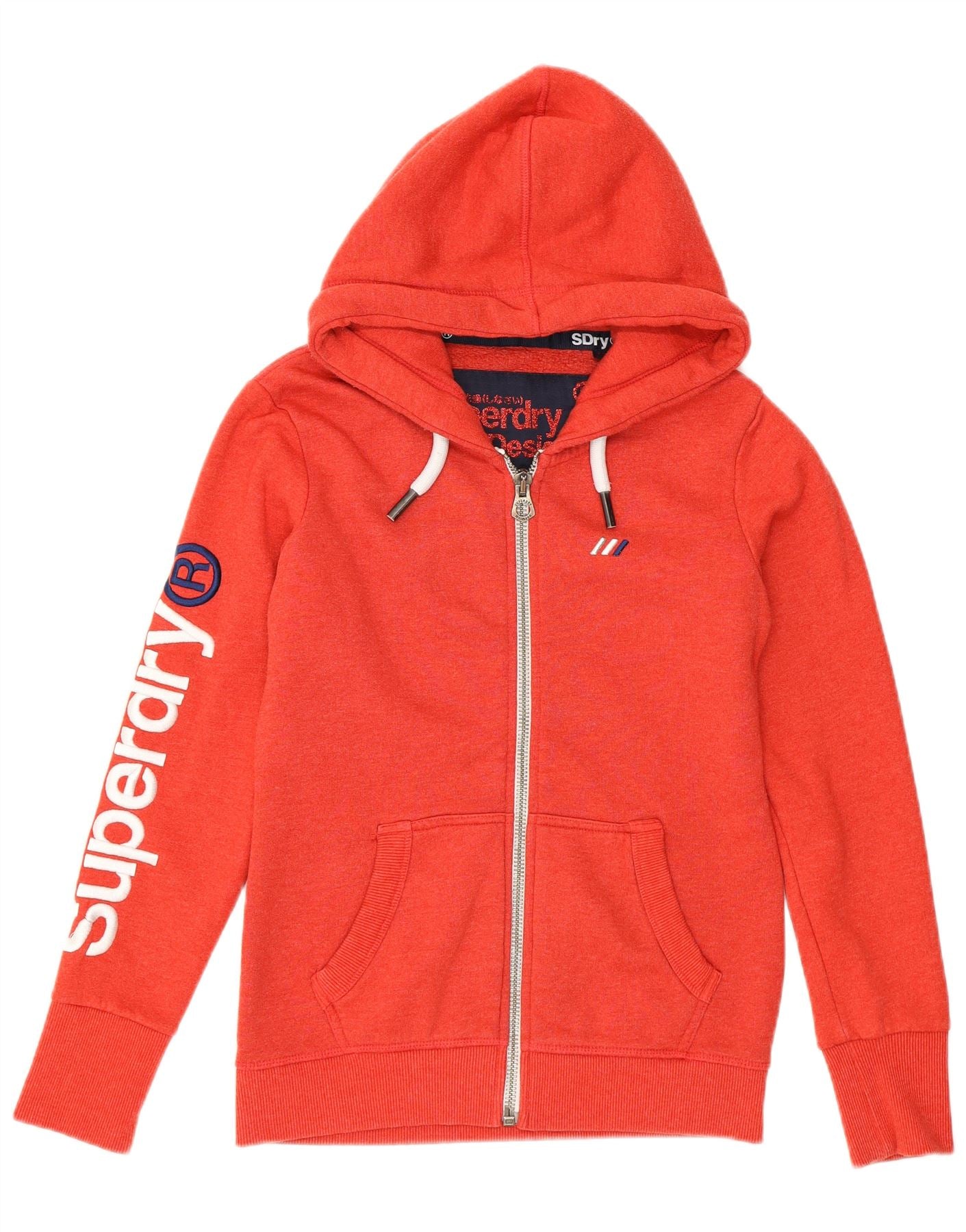 SUPERDRY Pulover cu glugă cu fermoar grafic pentru femei UK 8 Bumbac portocaliu mic