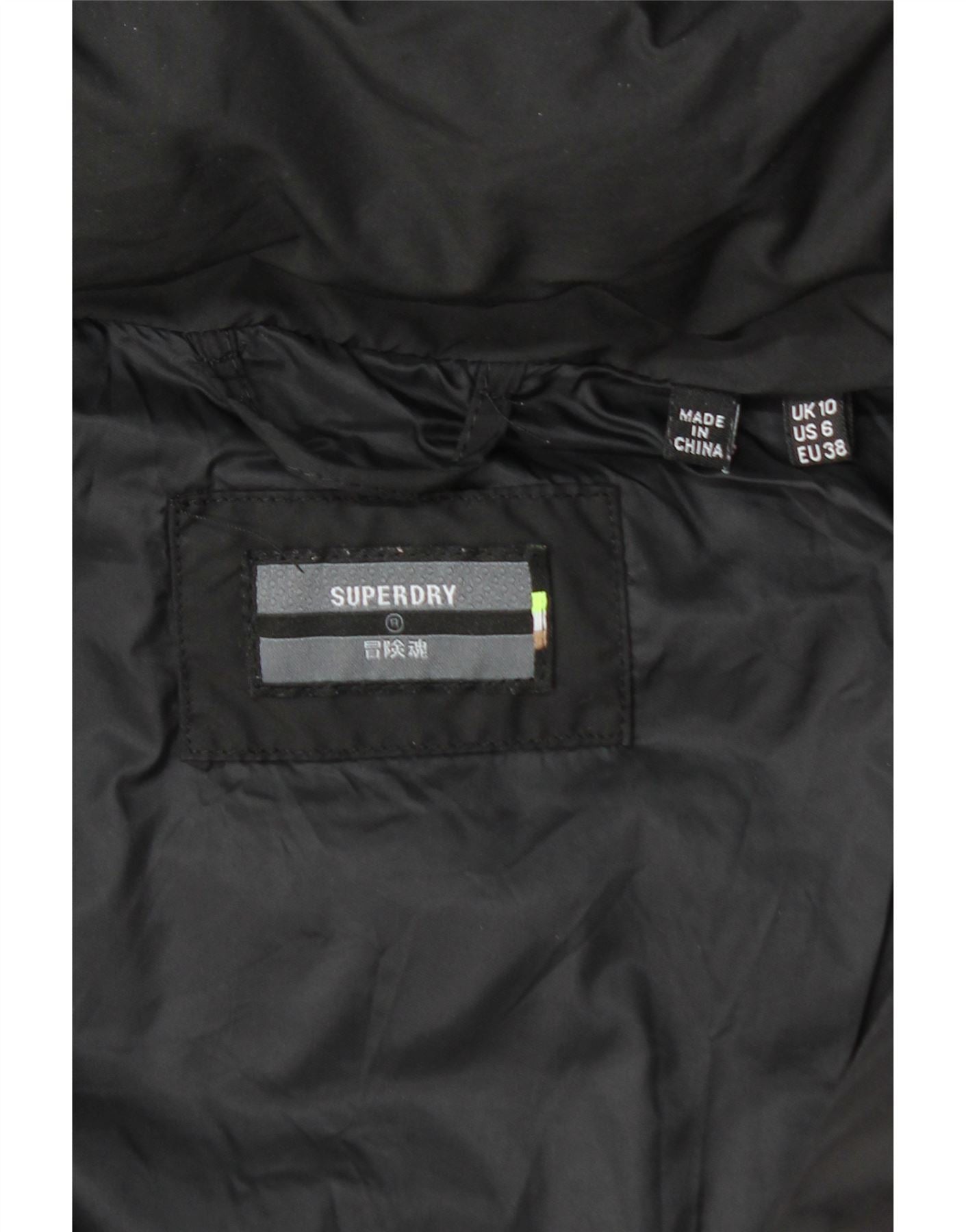 SUPERDRY Palton căptușit cu glugă pentru femei UK 10 Poliester negru mic