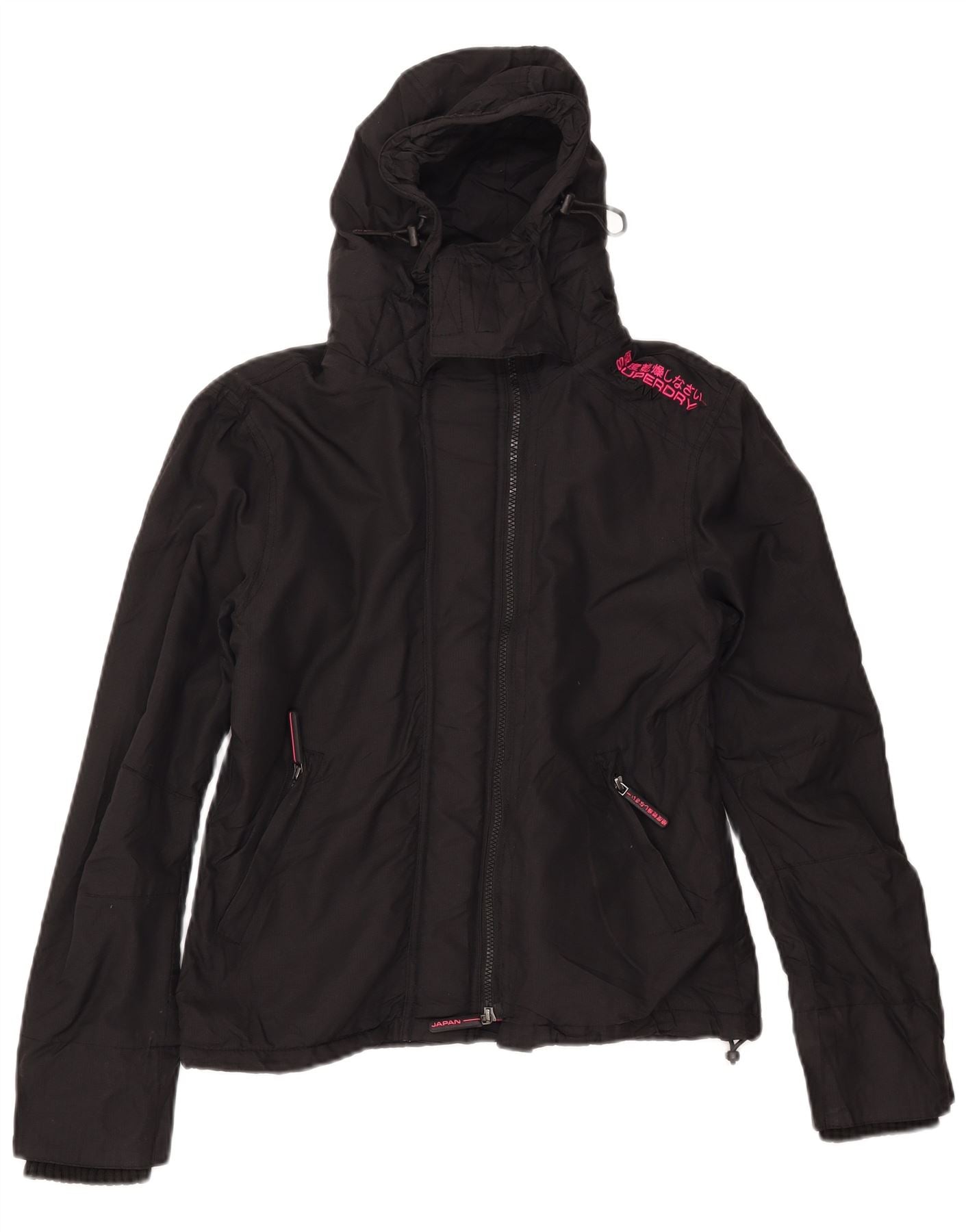 Jachetă Windbreaker pentru femei cu glugă Superdry UK 14 Medium Black Nylon