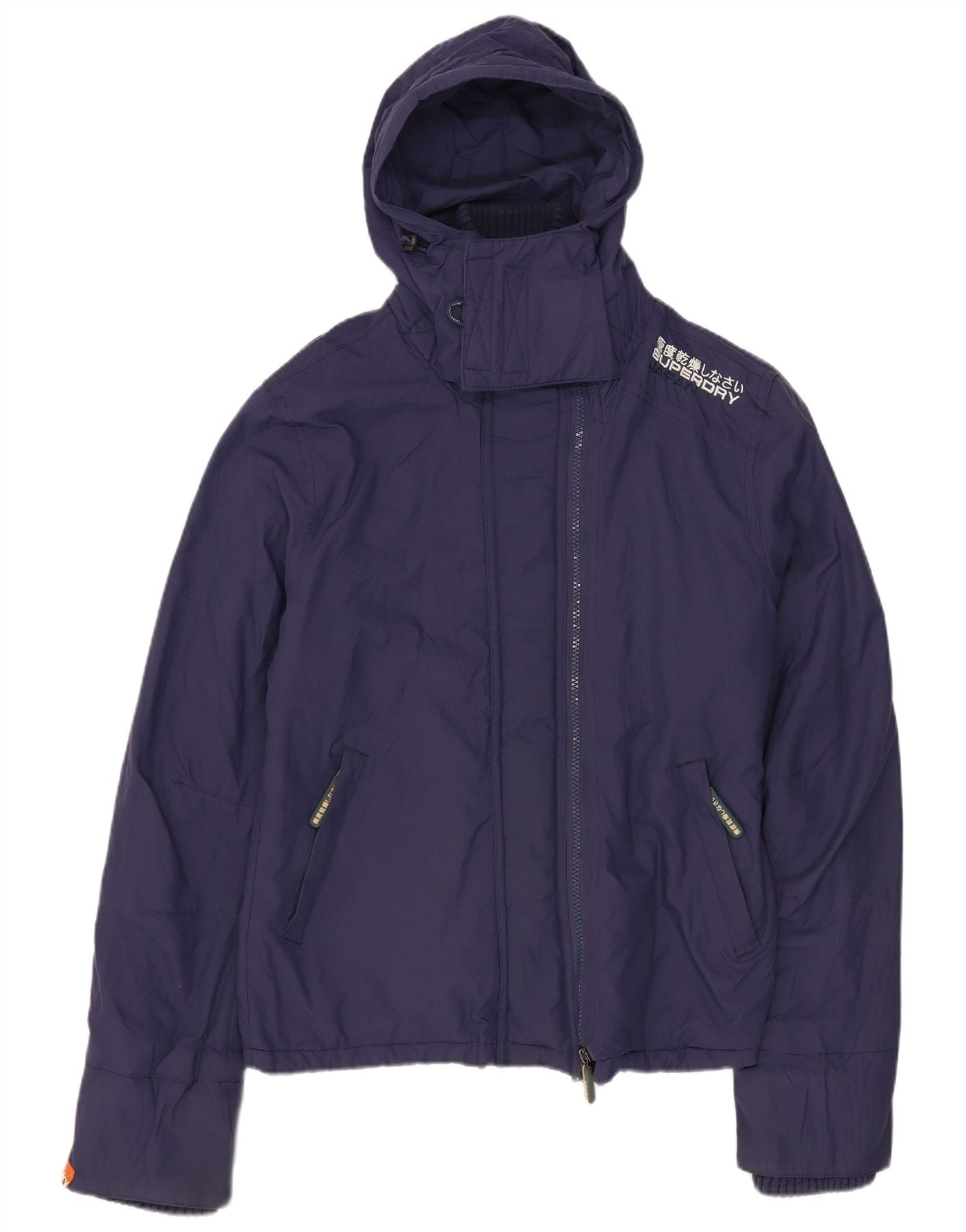 Jachetă de vânt cu glugă pentru femei SUPERDRY UK 14 Mediu Nailon bleumarin